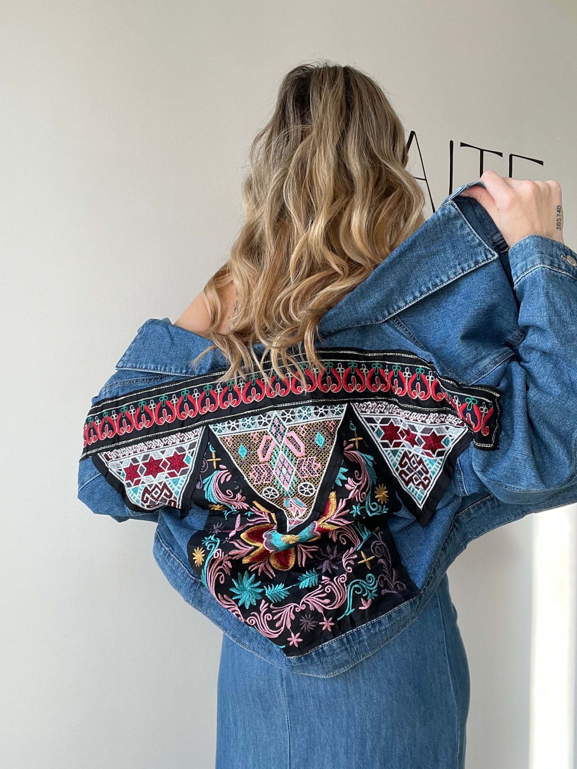 Giacca in Denim "Boho-Chic" con Ricamo sul Retro