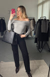 Maglia a manica lunga con scollatura off-shoulder color bordeaux.