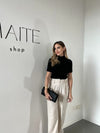 “Blazer nero 𝗠𝗮𝗶𝘁𝗲: taglio perfetto sulle spalle e lunghezza giusta sui jeans. Lo metto al lavoro e per l’aperitivo cambiando solo scarpe.”