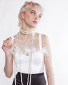 Body con piume naturali e coppe interne, chiusura laterale con cerniera e gancetto di sicurezza .