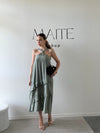 Realizzato in un raffinato marrone caldo, questo vestito lungo incarna uno stile minimal ma d’effetto. Il nodo sullo scollo halter valorizza le spalle con classe, mentre le balze diagonali donano movimento alla silhouette.