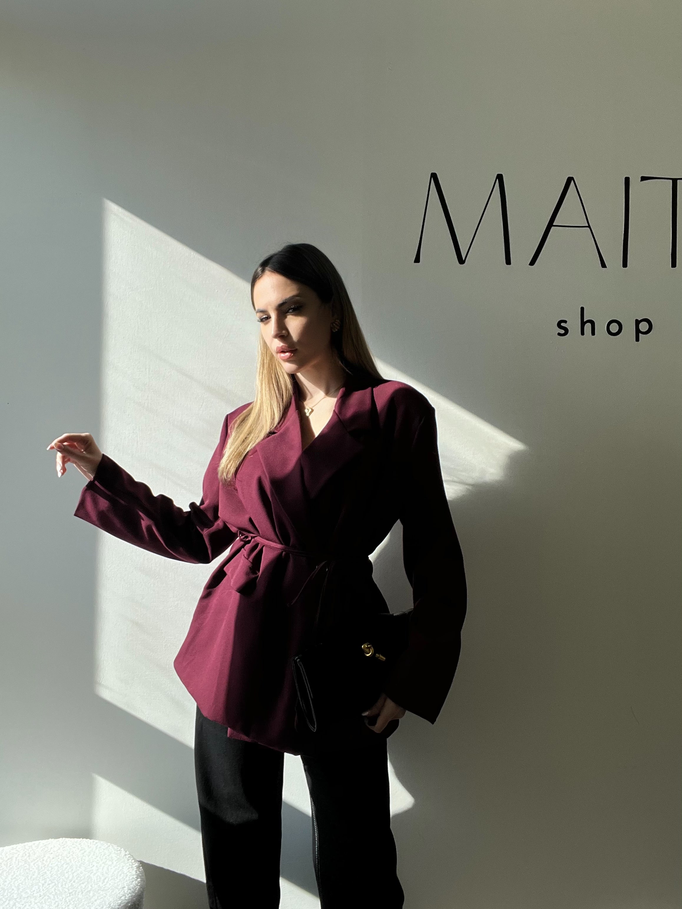 Giacca Bordeaux con Cintura – Taglia Unica