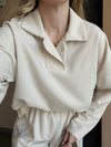 Maglia oversize con colletto a punta. Maniche lunghe.Presenta scollo a V. Linea dritta. Fit morbido,disponibile in taglia S/M,