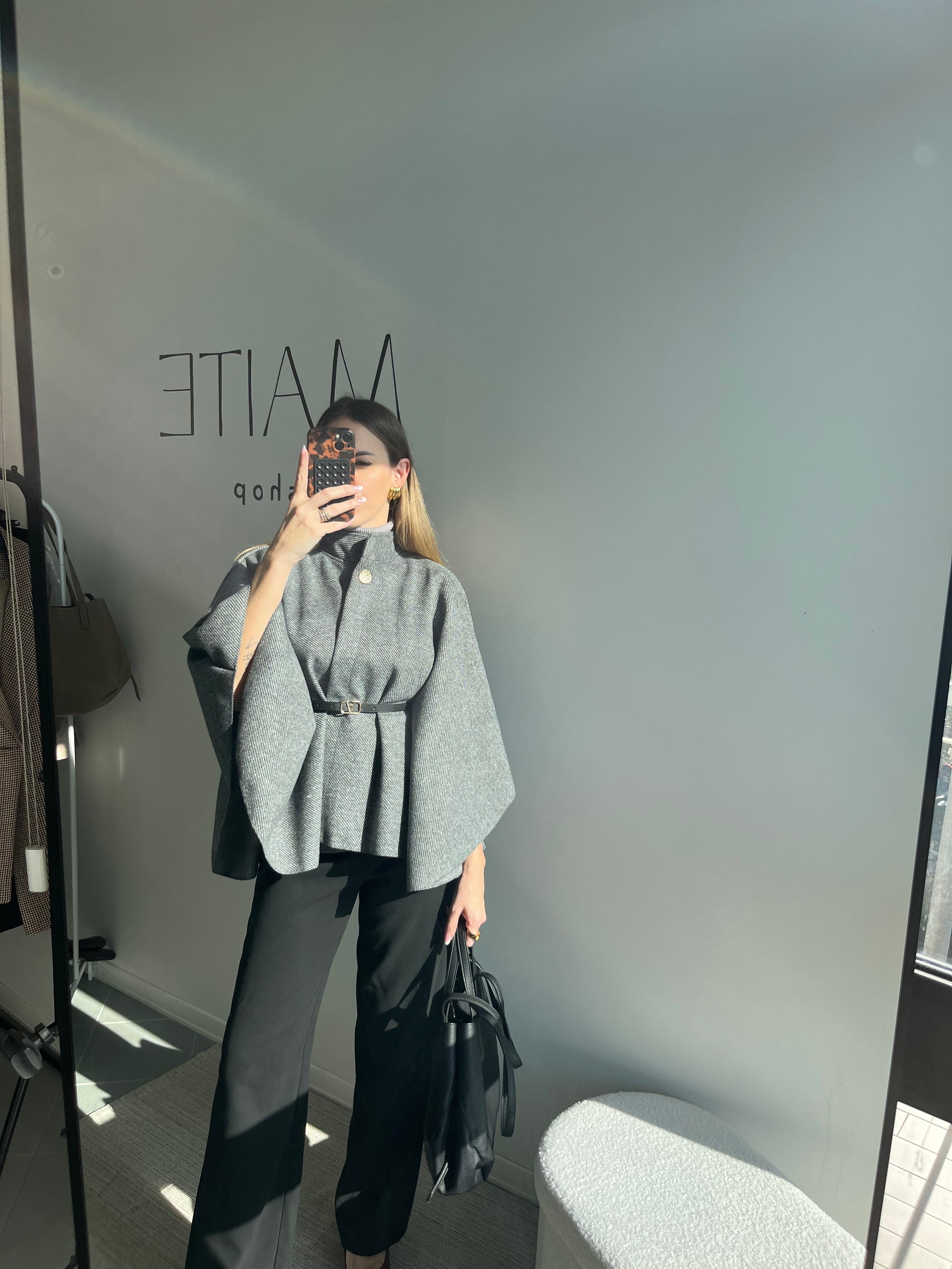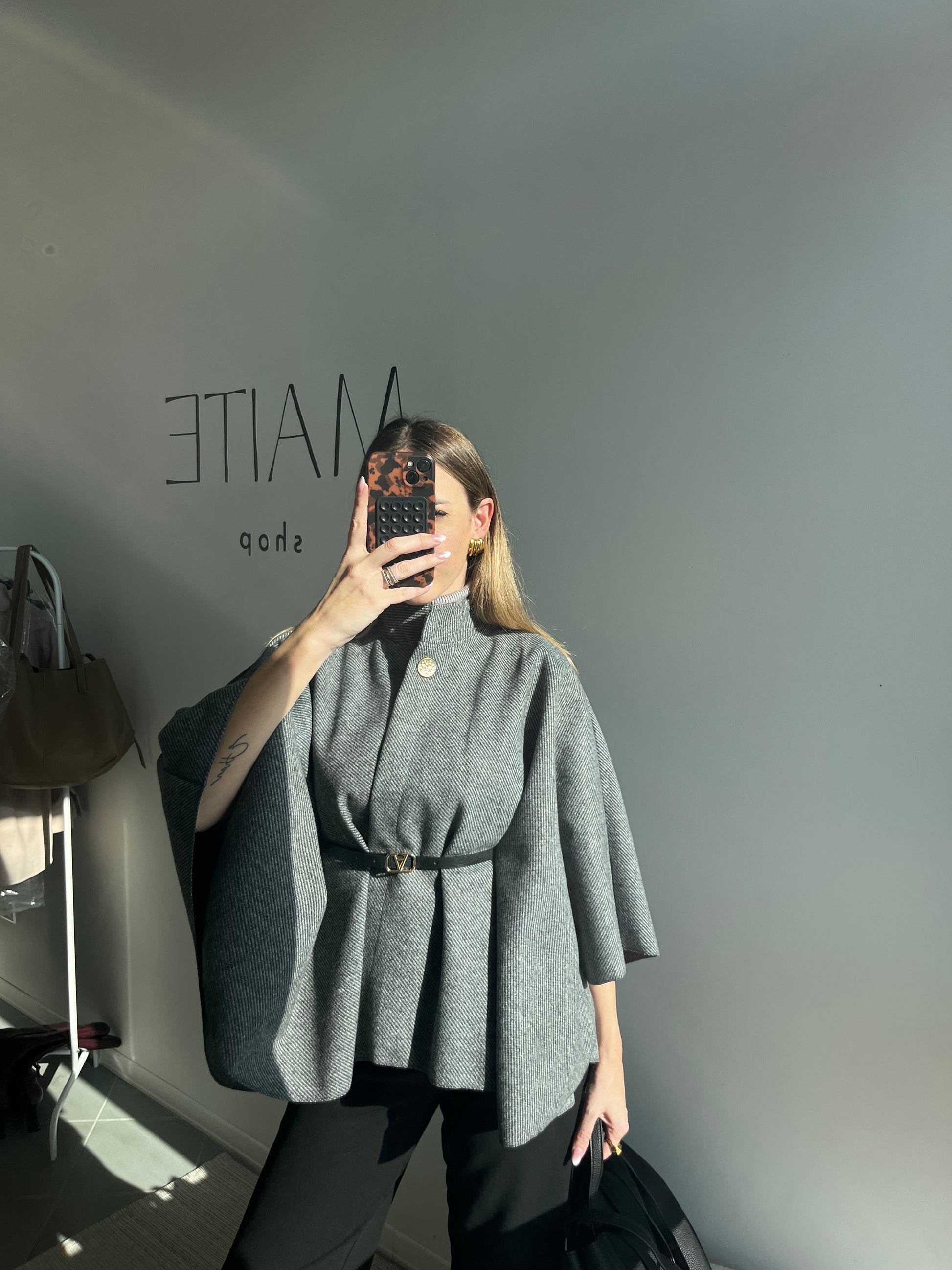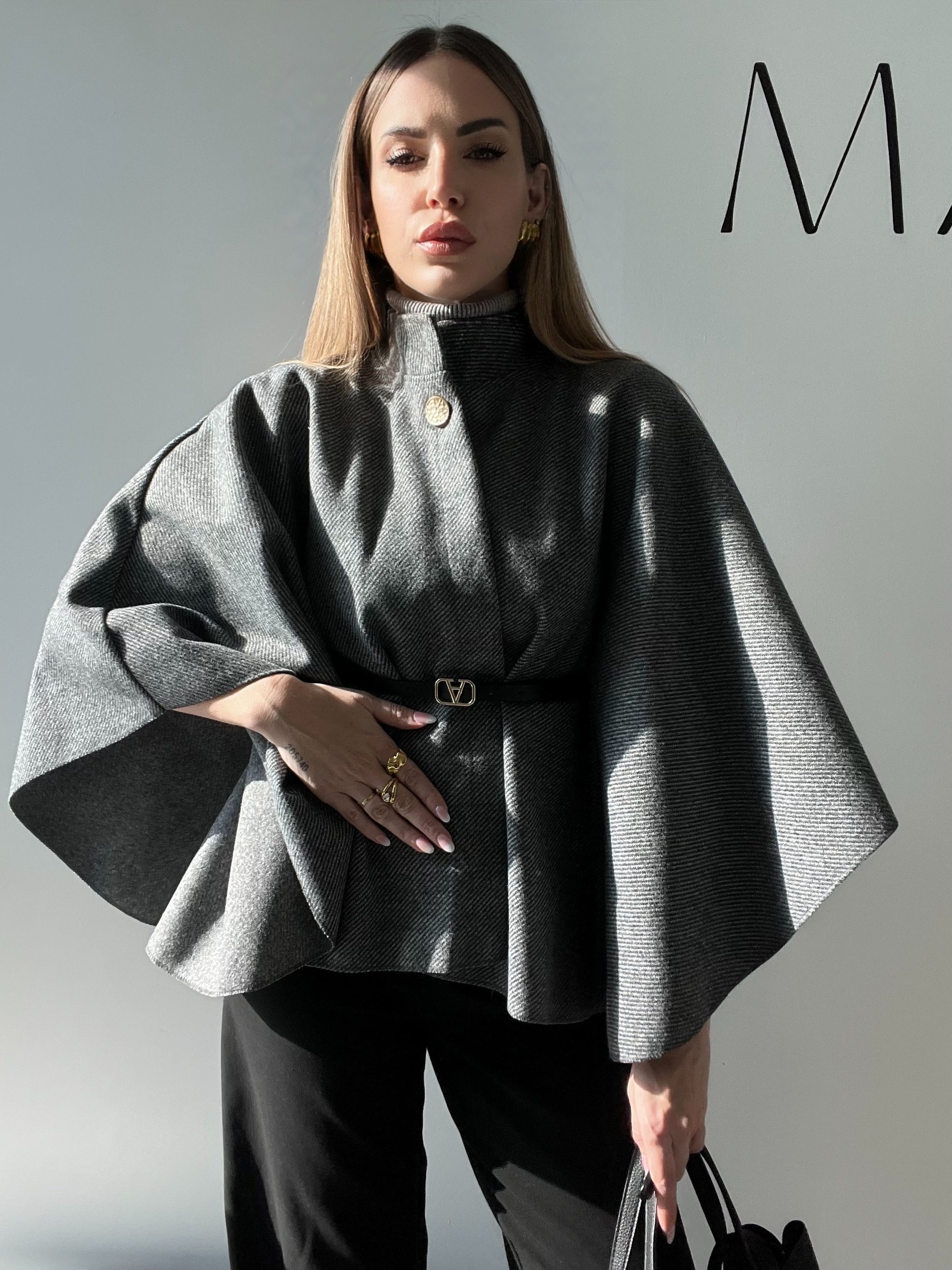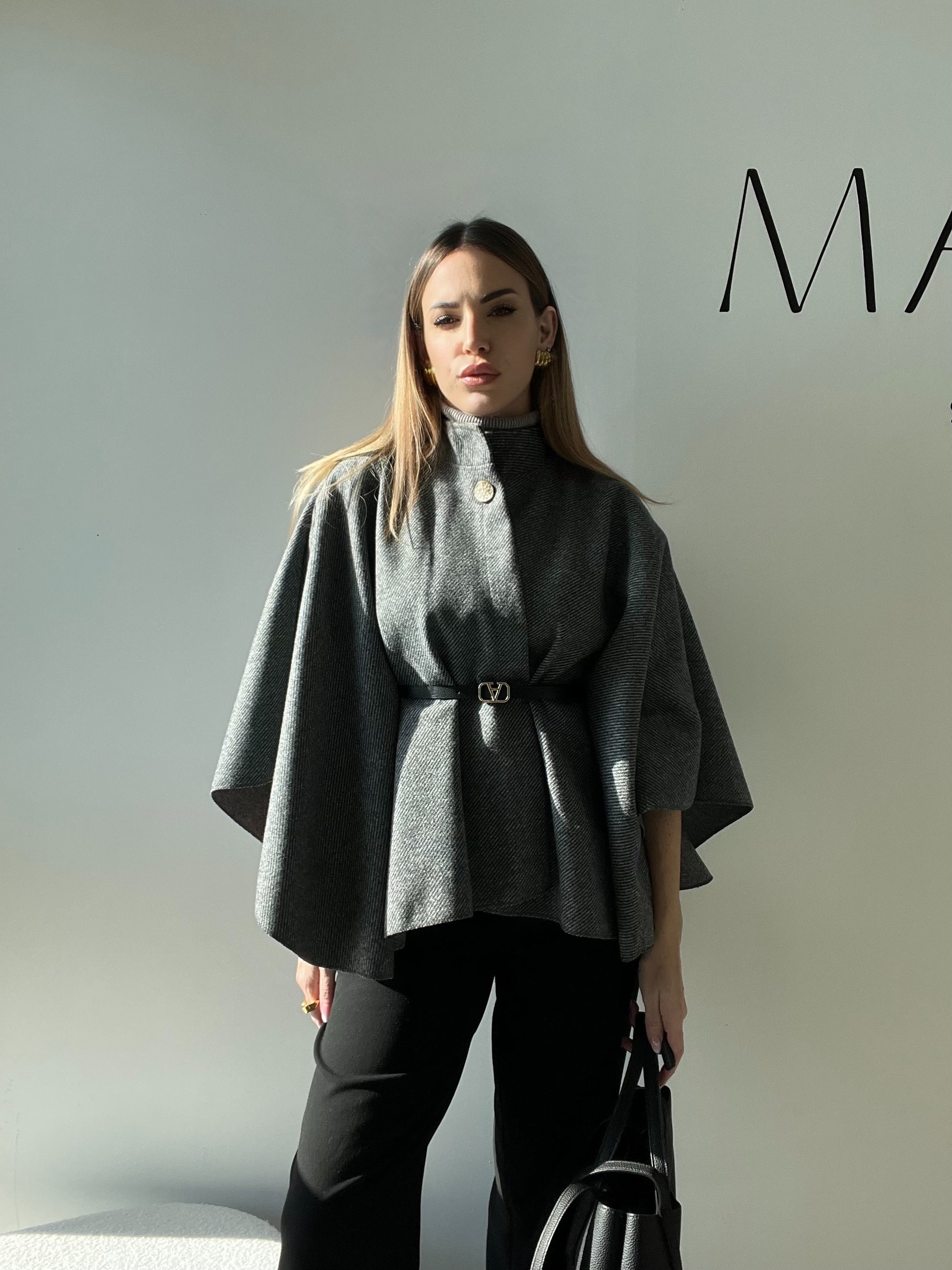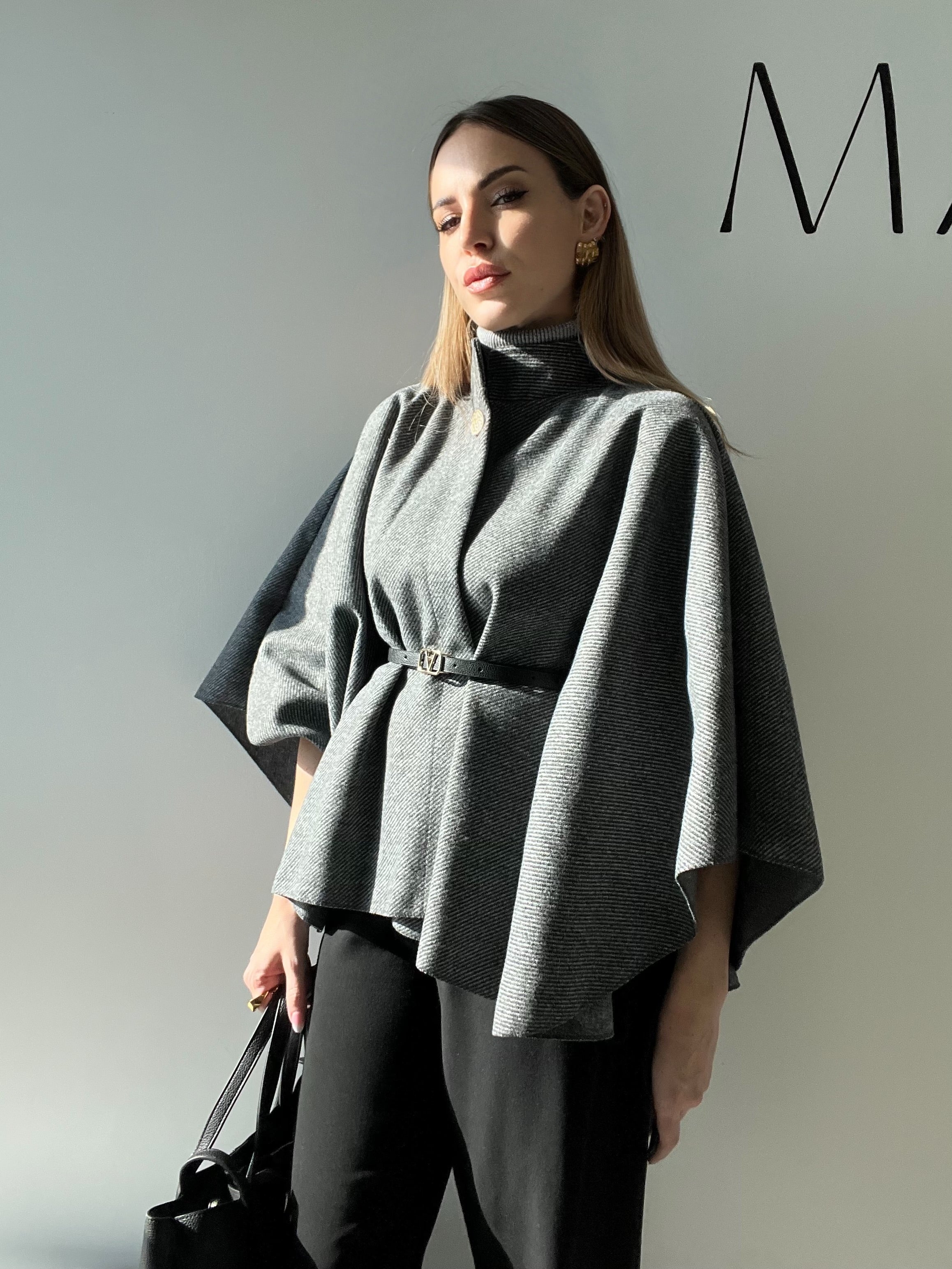 • Dettagli Inclusi: La mantella include una cintura in ecopelle nera con una fibbia dorata di design, permettendoti di stringerla in vita per definire la silhouette e creare un look più strutturato. Puoi anche scegliere di indossarla aperta per un effetto più fluido.