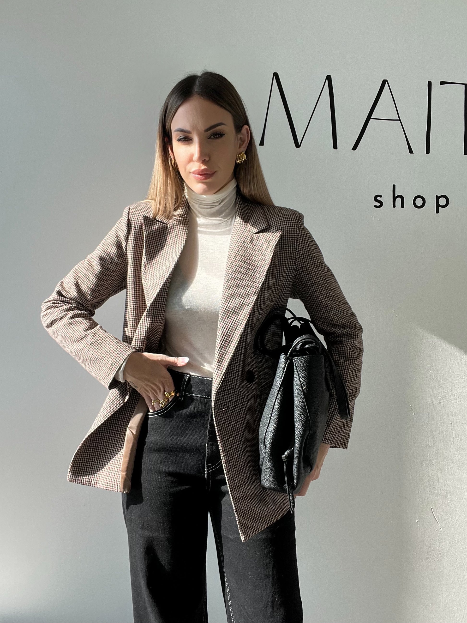 Il capo di cui non potrai più fare a meno! Eleganza e versatilità racchiuse in un blazer strutturato con chiusura doppiopetto. La fantasia neutra a quadretti lo rende un passe-partout perfetto per ogni stagione.