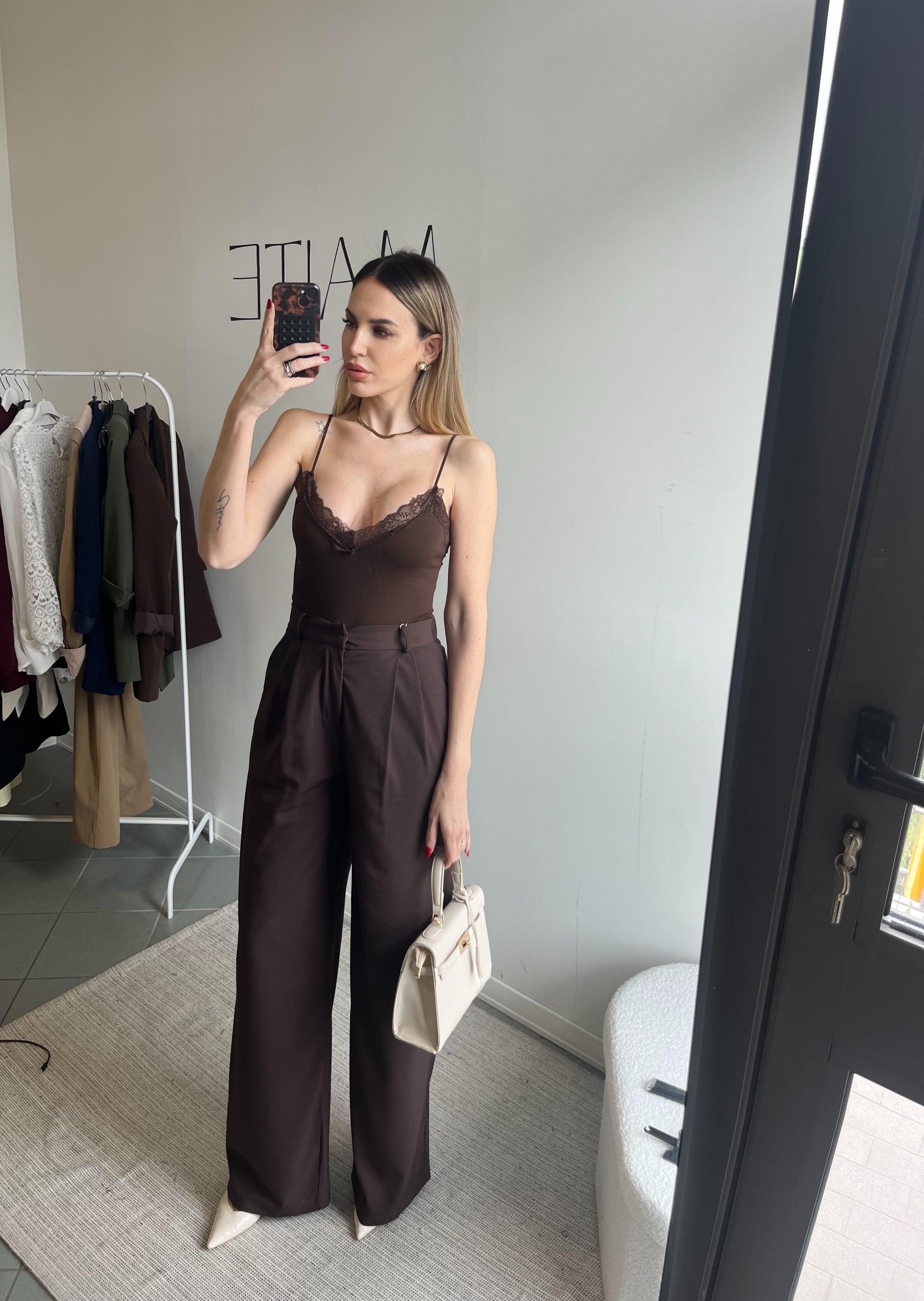 Il nostro Body in Lycra Chocolate è il pezzo essenziale che non può mancare nel tuo guardaroba. Progettato per aderire come una seconda pelle, questo body esalta le forme naturali con un tocco di eleganza