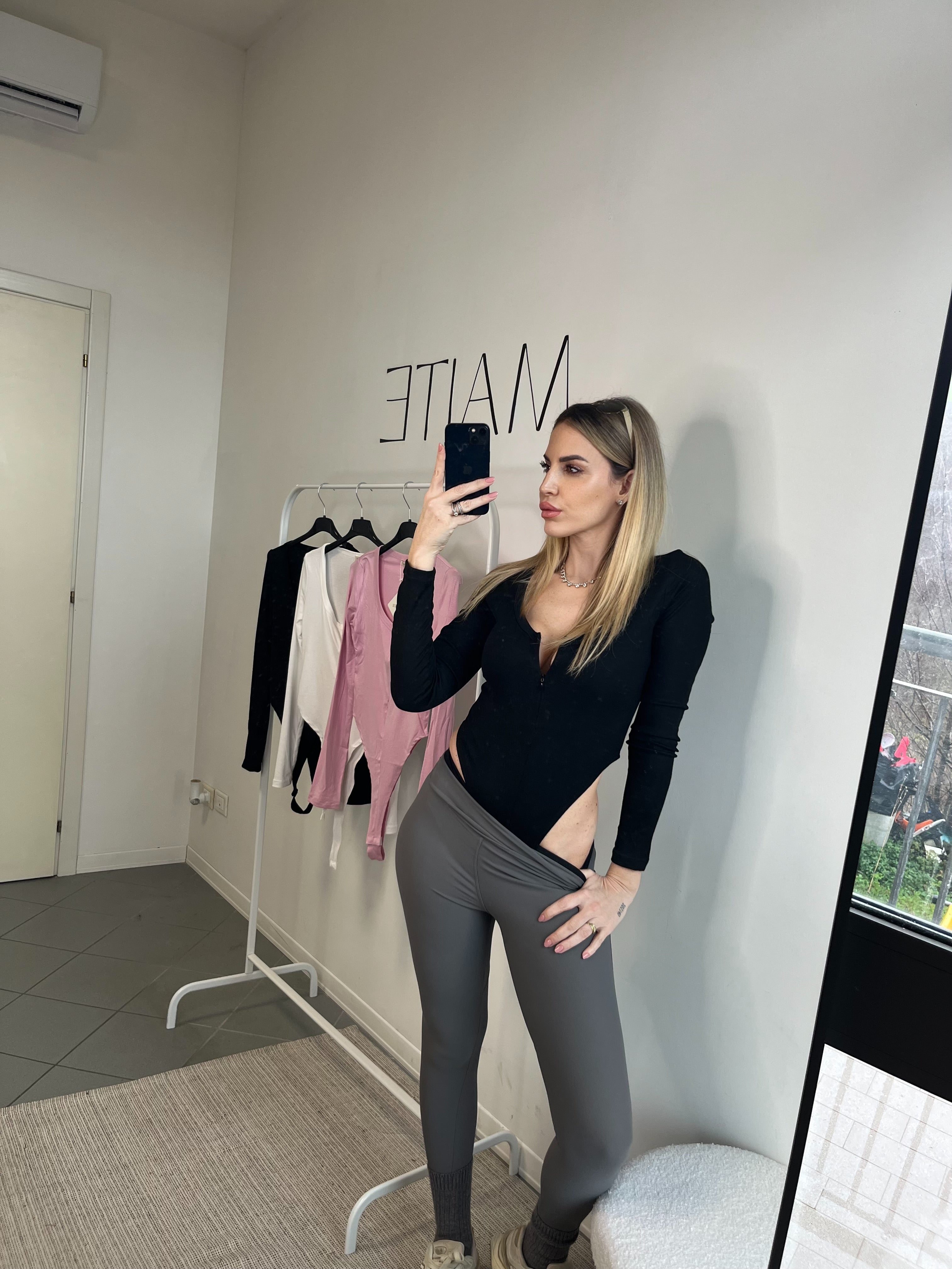 Questo body aderente è realizzato in tessuto elasticizzato e morbido, che si adatta al corpo offrendo comfort e sostegno per tutta la giornata.La zip frontale permette di regolare lo scollo a piacere, rendendo il capo versatile e perfetto sia per look più minimal che per outfit più sensuali. La sgambatura alta slancia la figura e mette in risalto le forme, creando un effetto otticamente allungato.