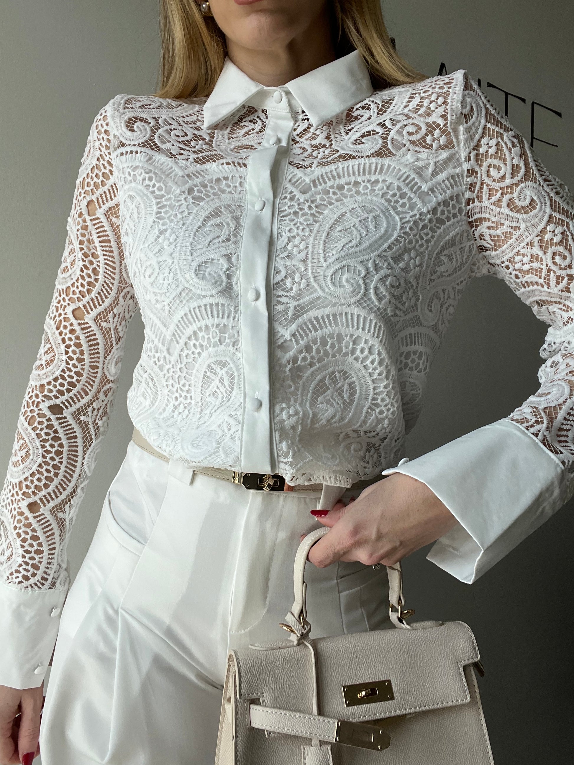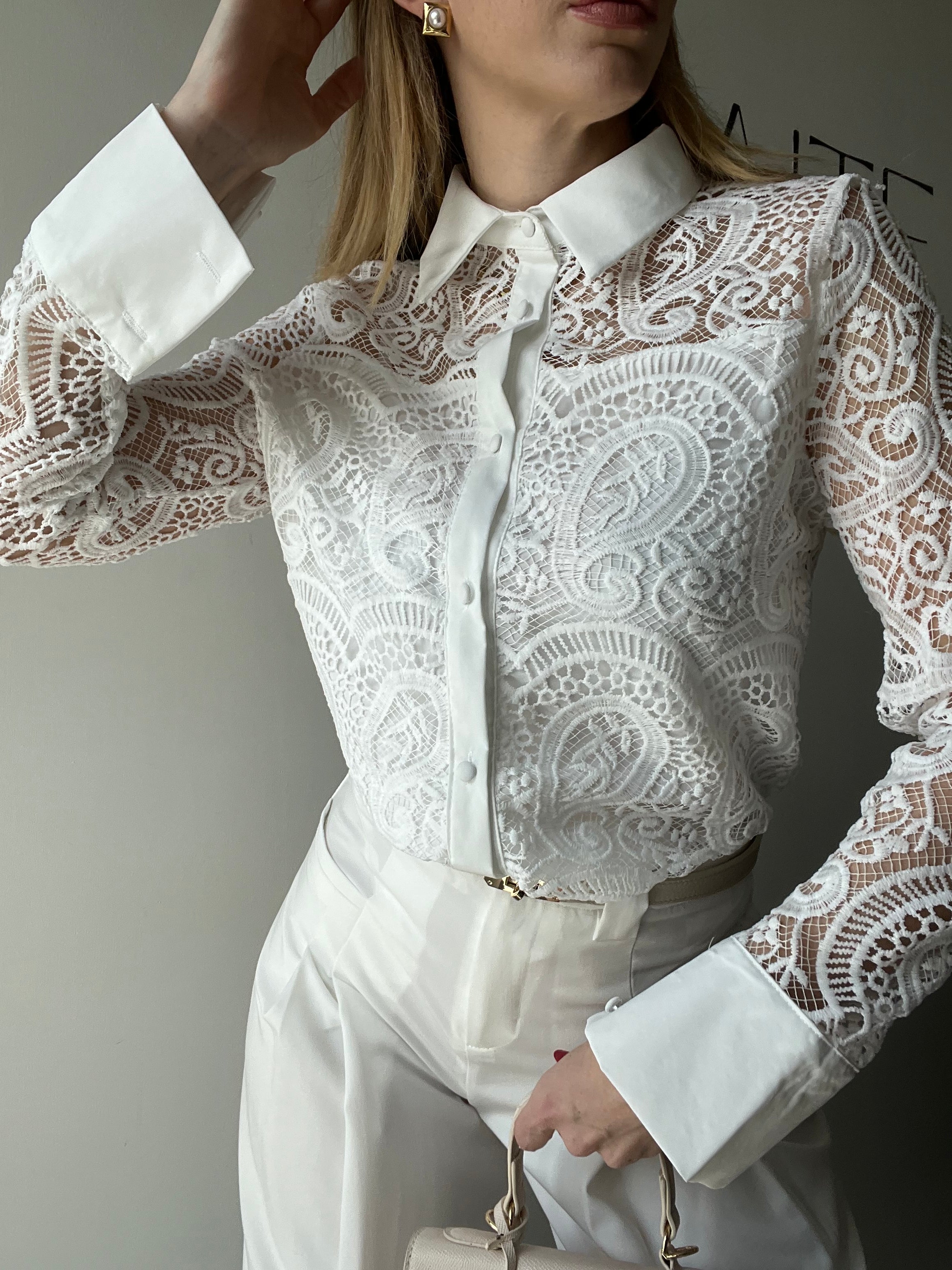 Camicia "Ethereal" in Pizzo Macramè – Bianco Ottico