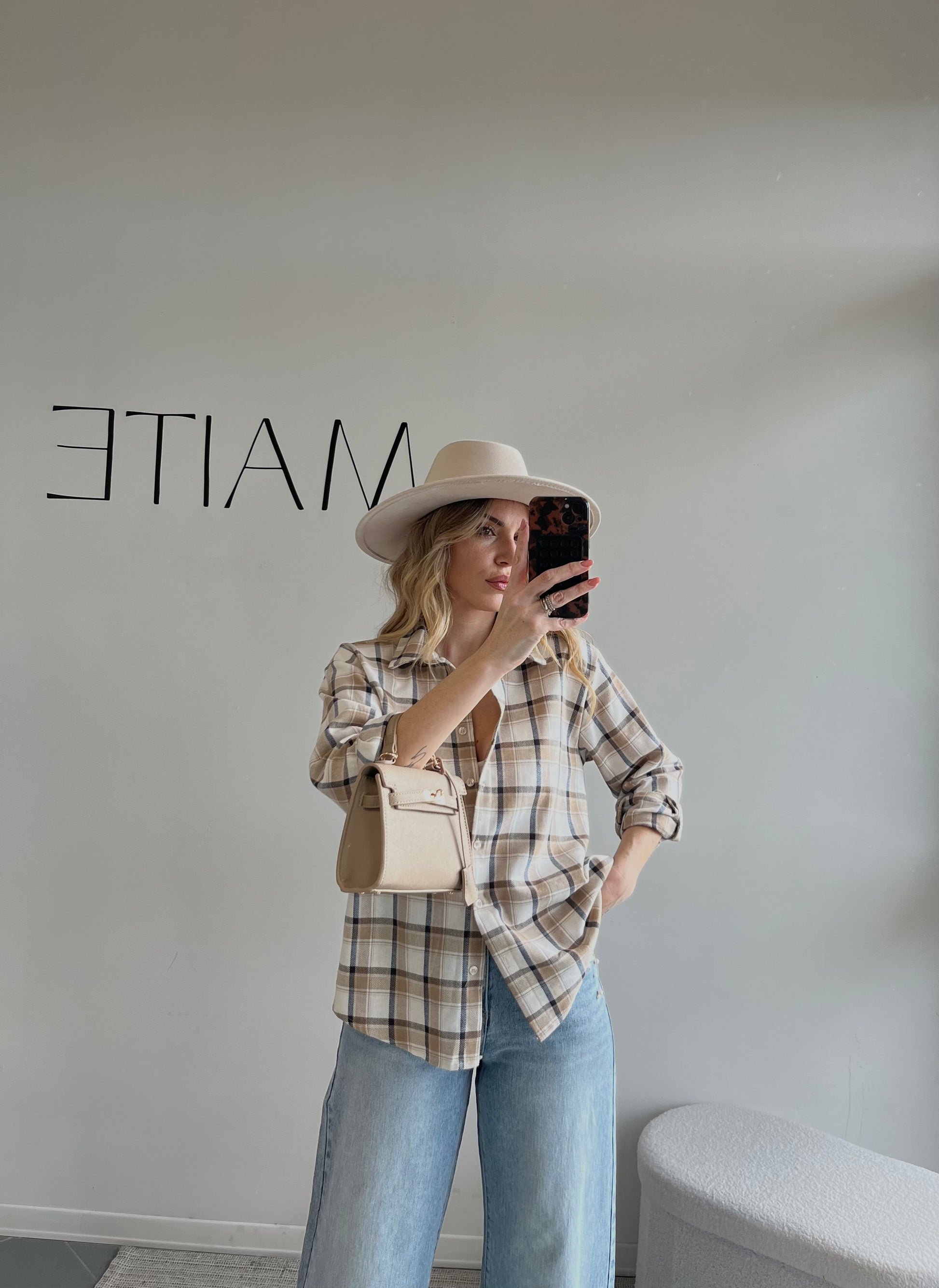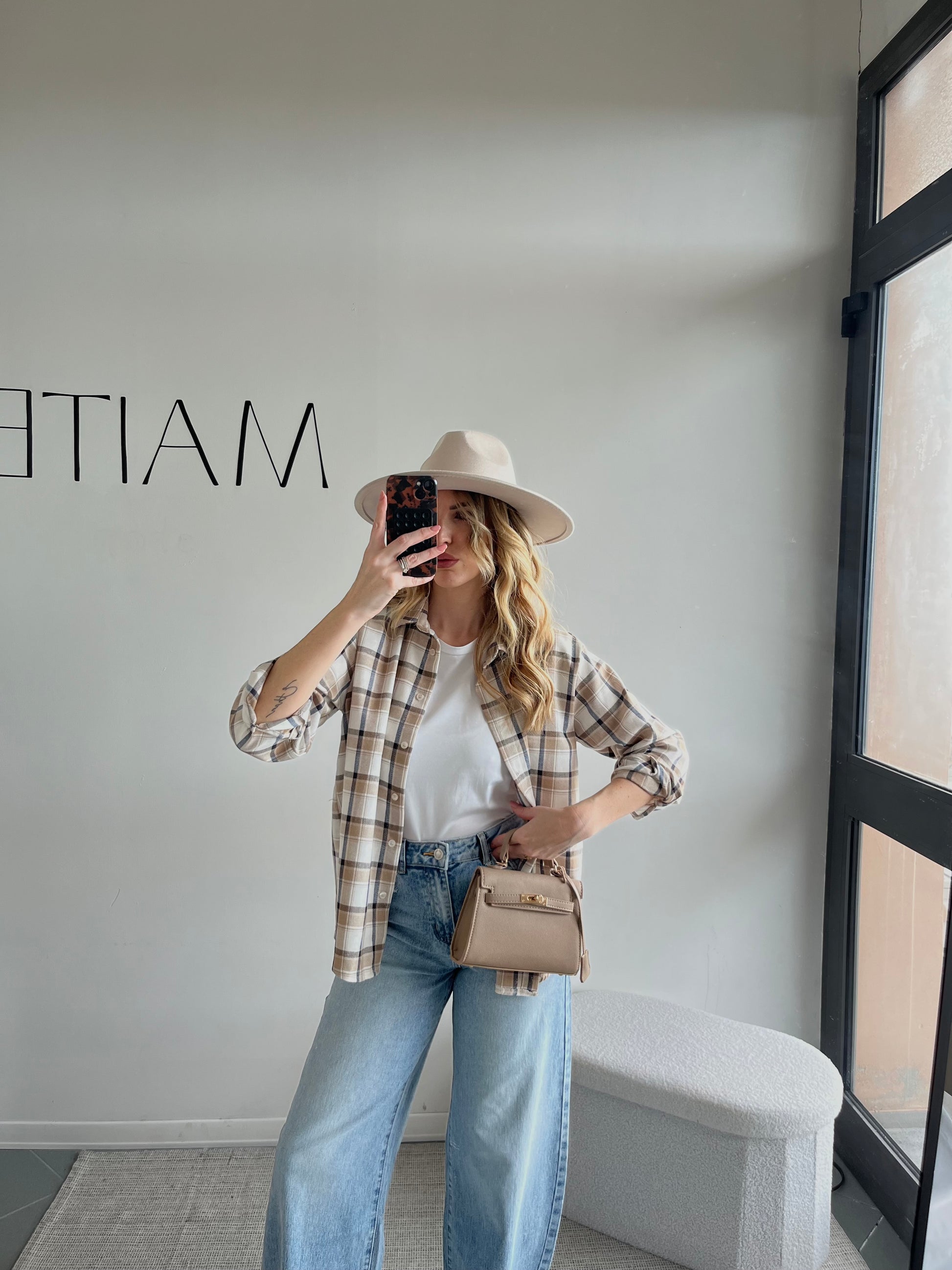 CAMICIA A QUADRI ROSA con dettagli righe marroni e blu