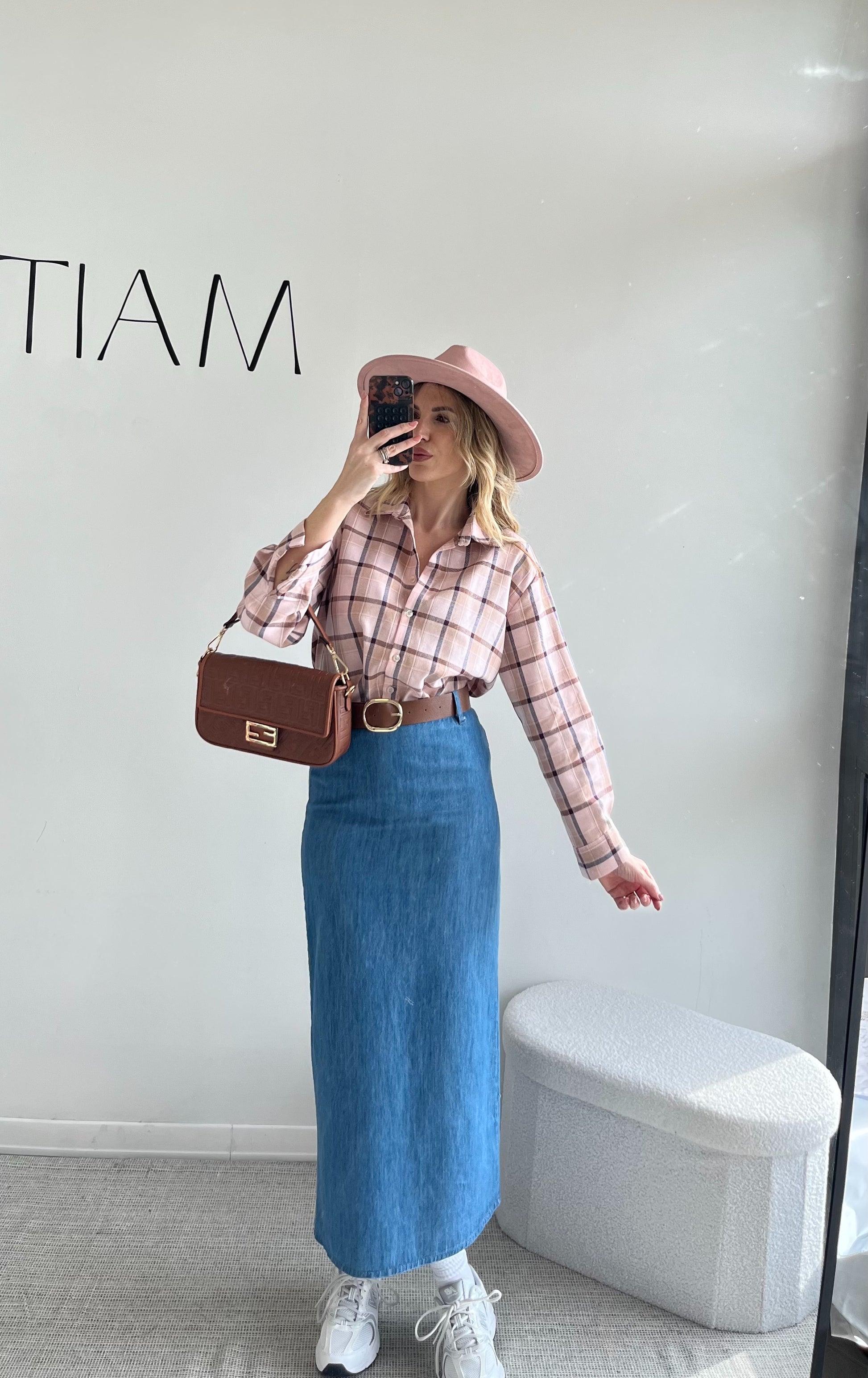 CAMICIA A QUADRI ROSA con dettagli righe marroni e blu