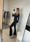 I leggings a vita alta, dalla linea leggermente svasata sul fondo, slanciano la figura e garantiscono massima libertà di movimento. Il tessuto è morbido sulla pelle, traspirante e ultra stretch, ideale per allenamenti leggeri, pilates, yoga o per un look athleisure raffinato.