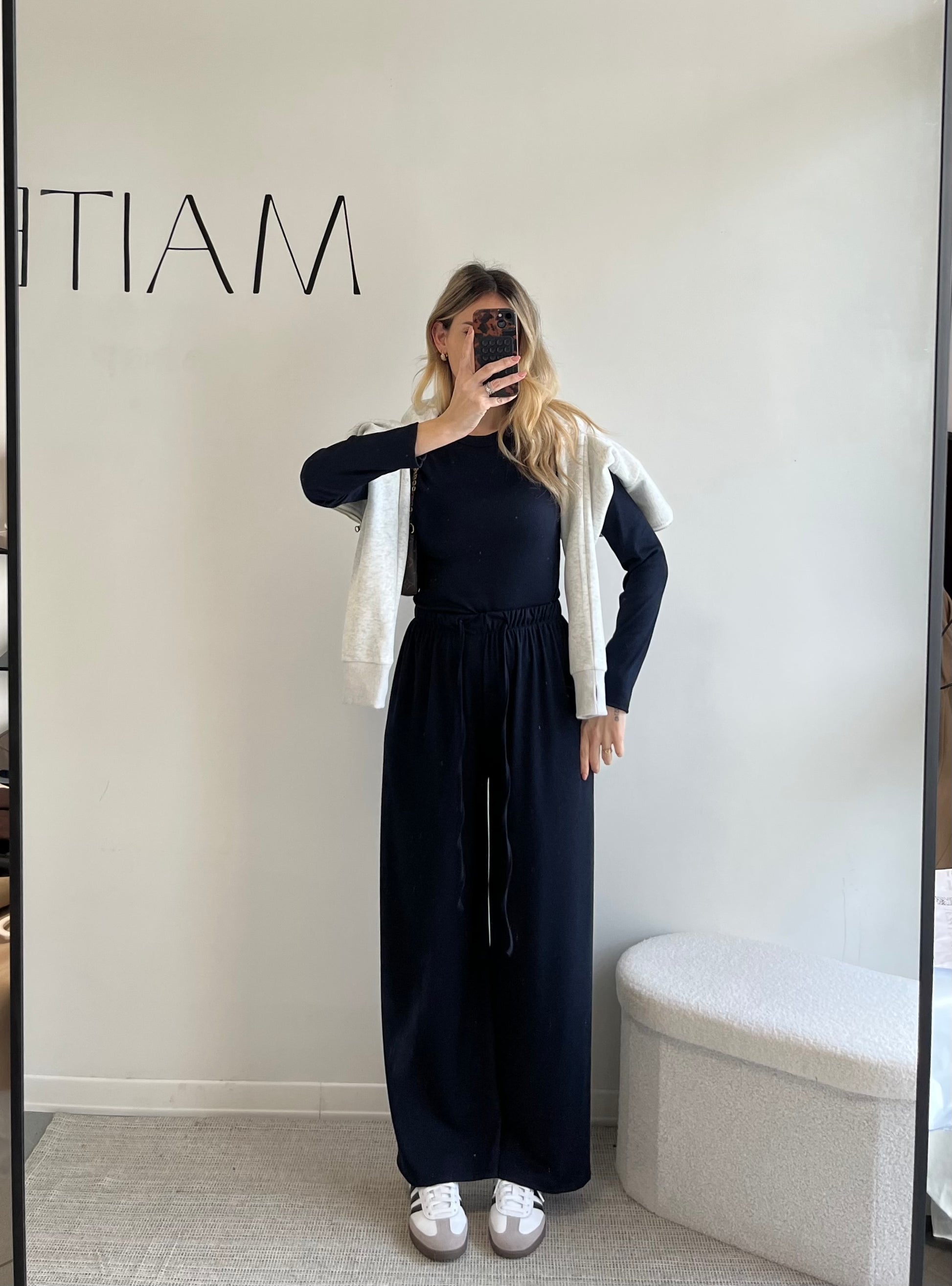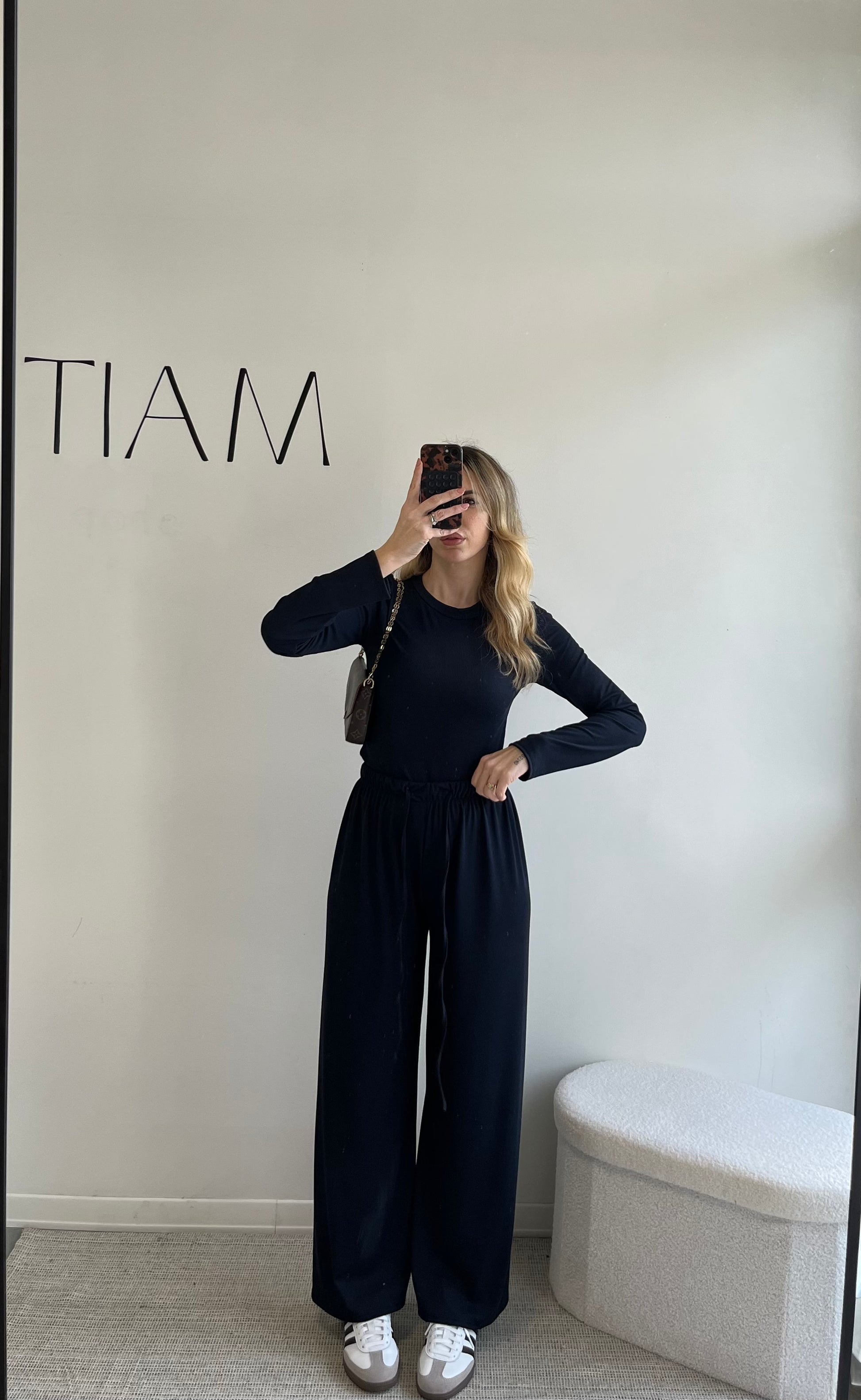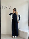 Questo coordinato blu notte è pensato per accompagnarti con eleganza nella quotidianità, senza rinunciare alla comodità.