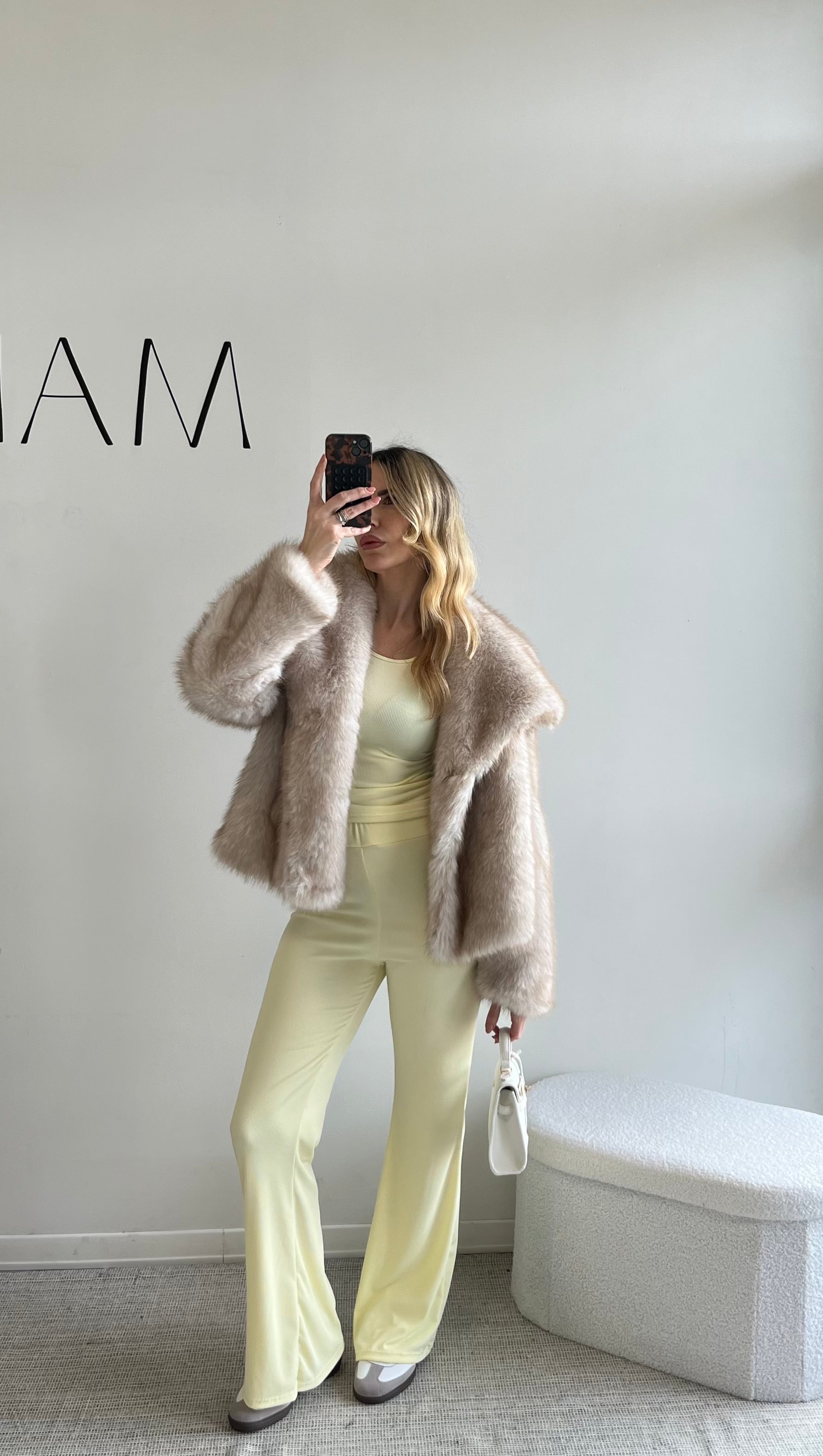 Un coordinato essenziale e super femminile, pensato per adattarsi armoniosamente a diverse fisicità.