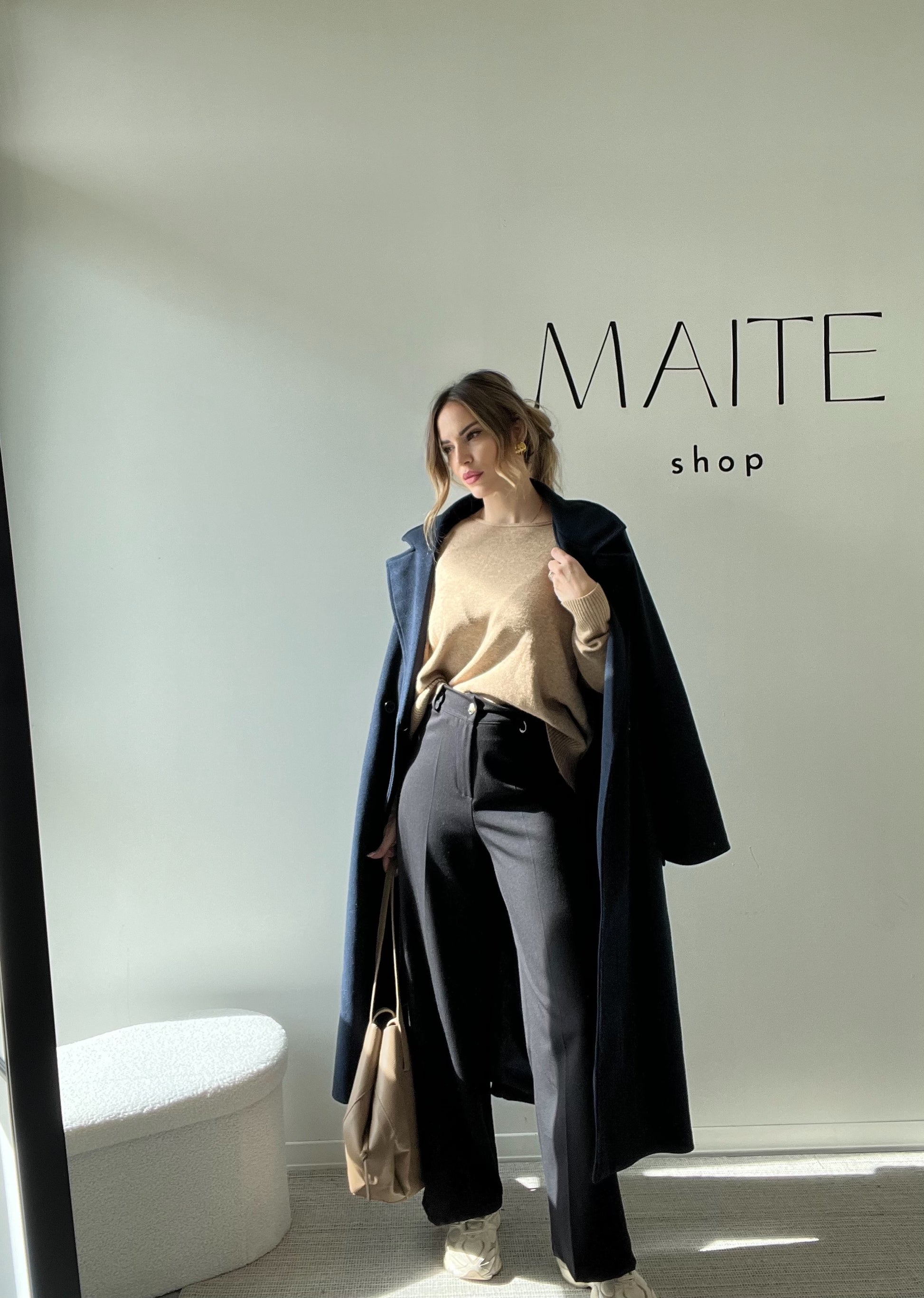 Pantalone nero a gamba dritta,la vita con elastico sul retro assicura una vestibilità comoda e adattabile, ideale per la taglia unica, i passanti per cintura completano e donano funzionalità ed eleganza.