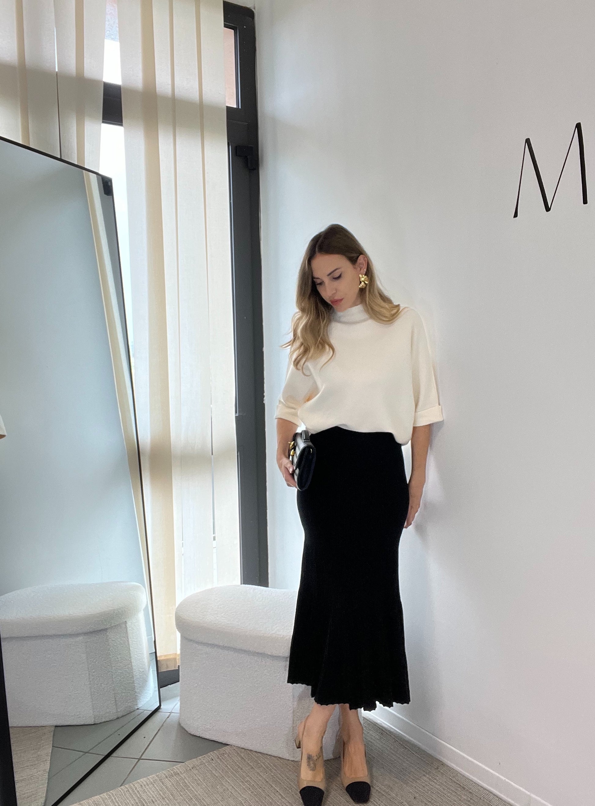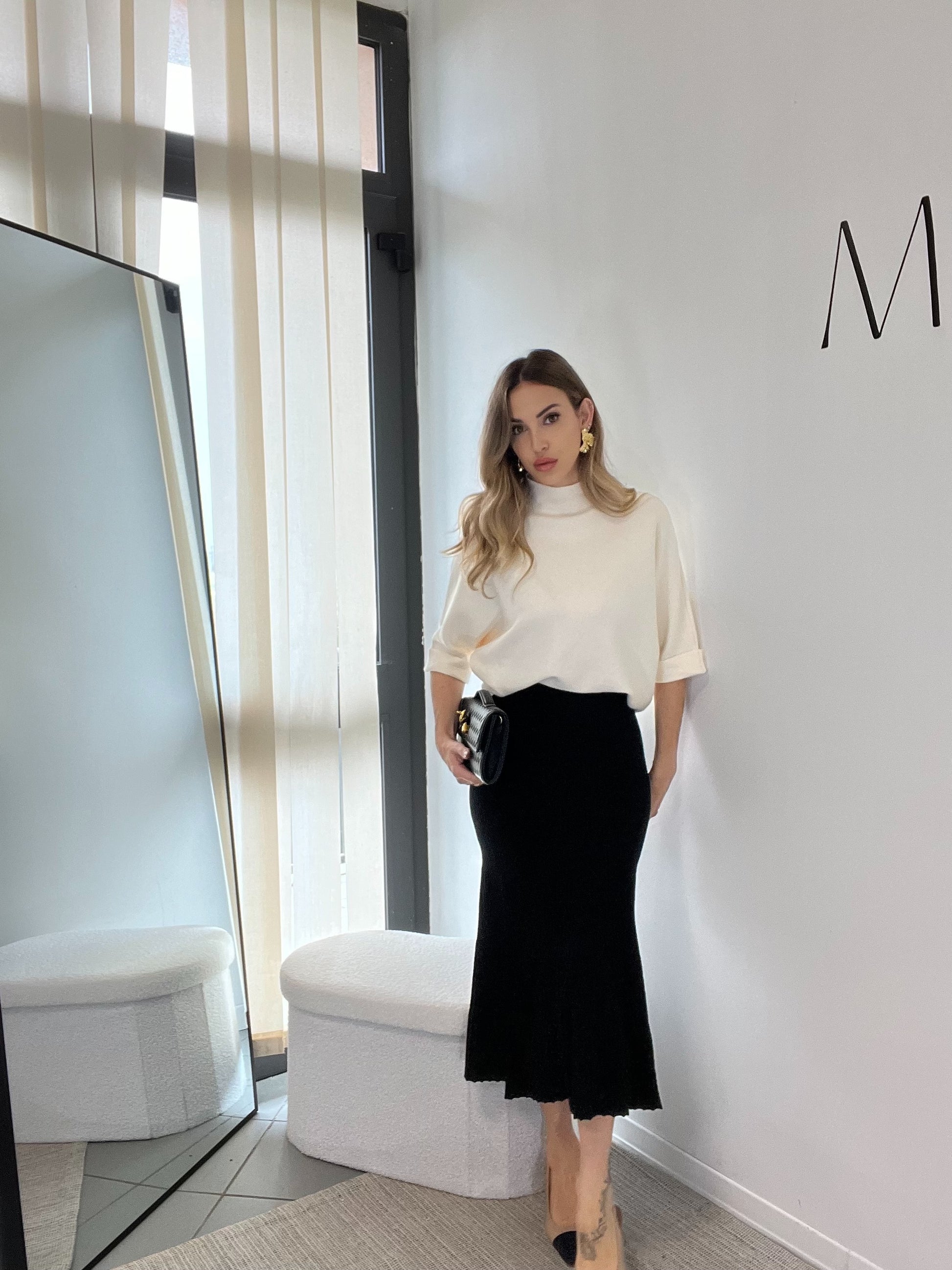Eleganza e comfort si incontrano in questa gonna midi in maglia pesante, perfetta per le giornate più fredde. La sua linea midi fluida e avvolgente valorizza ogni silhouette, mentre la maglia spessa di alta qualità garantisce calore e vestibilità senza rinunciare allo stile.
