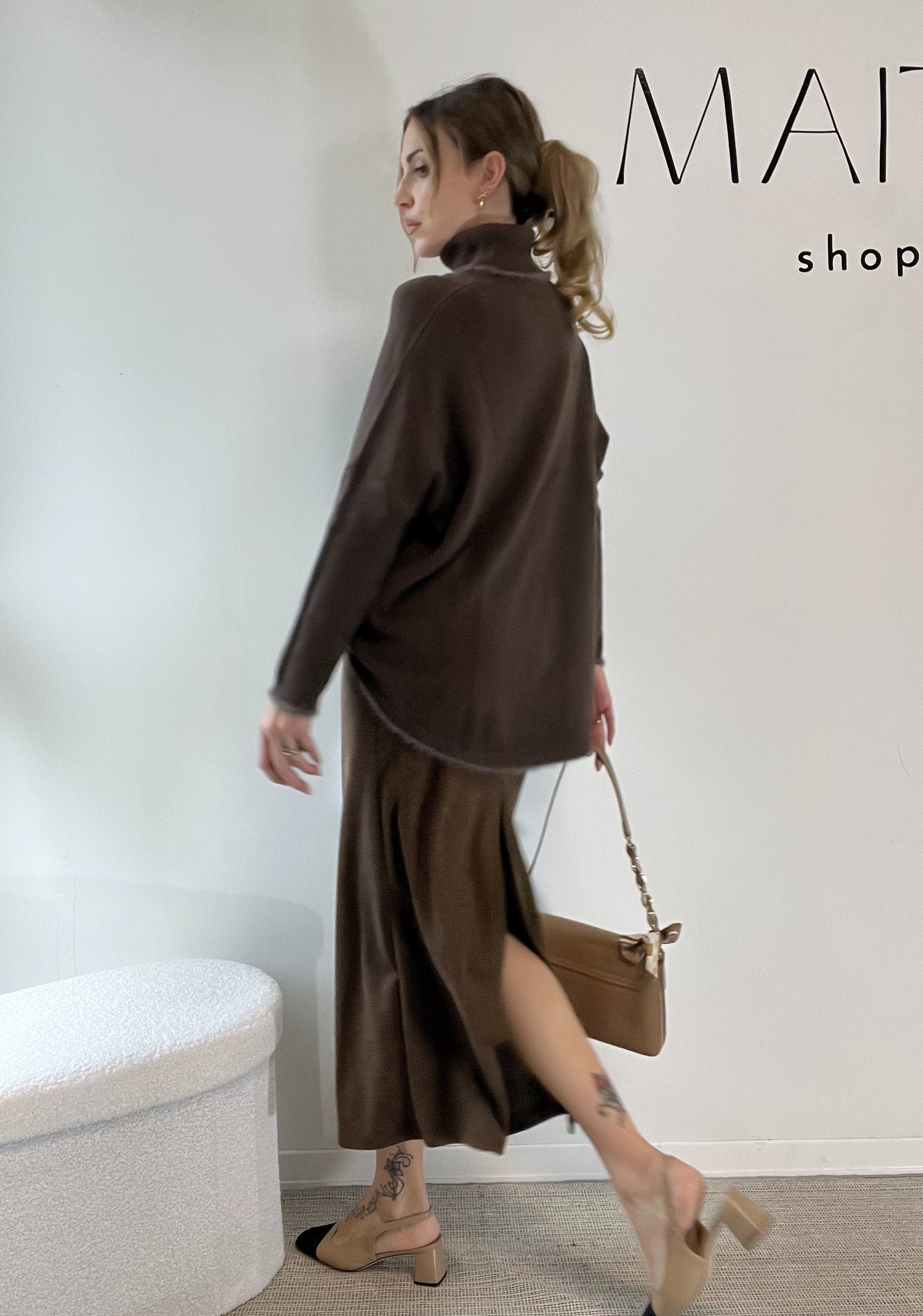 Avvolgente, sofisticata e incredibilmente confortevole: la nostra gonna in maglia con spacco sul retro è il capo essenziale per la stagione.