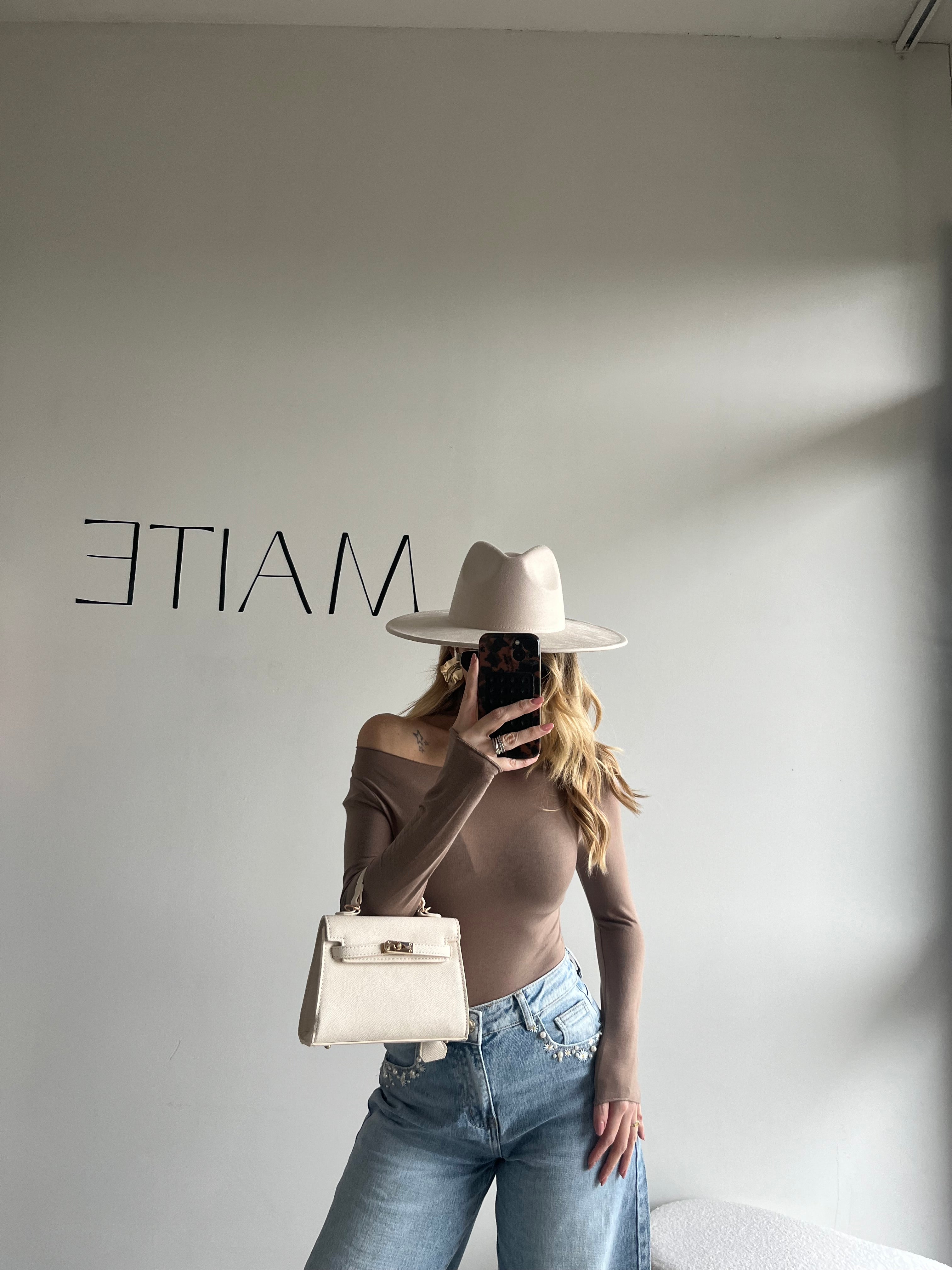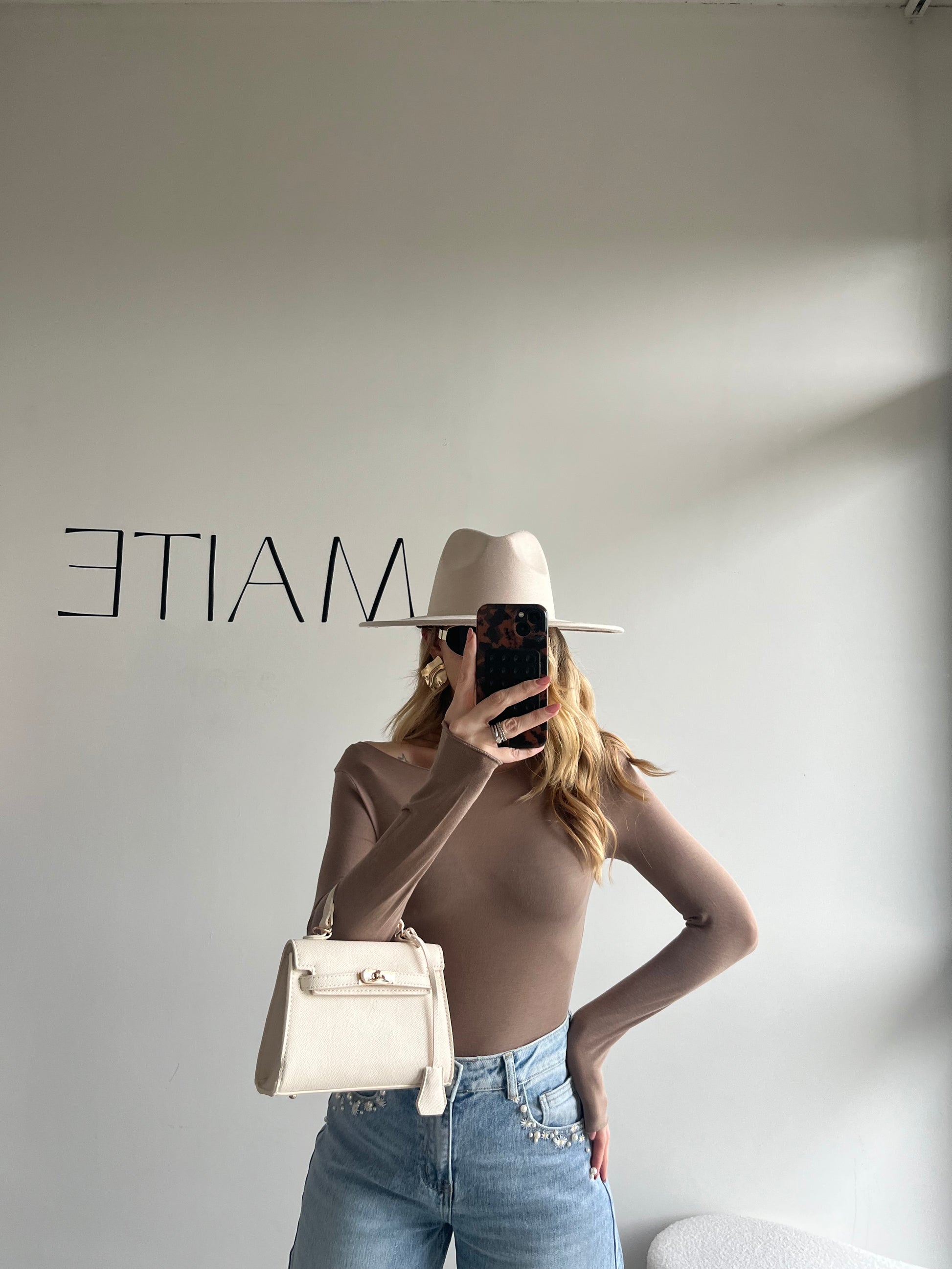 Maglia basic taupe leggermente velata perfetta per tutti o tuoi outfit.