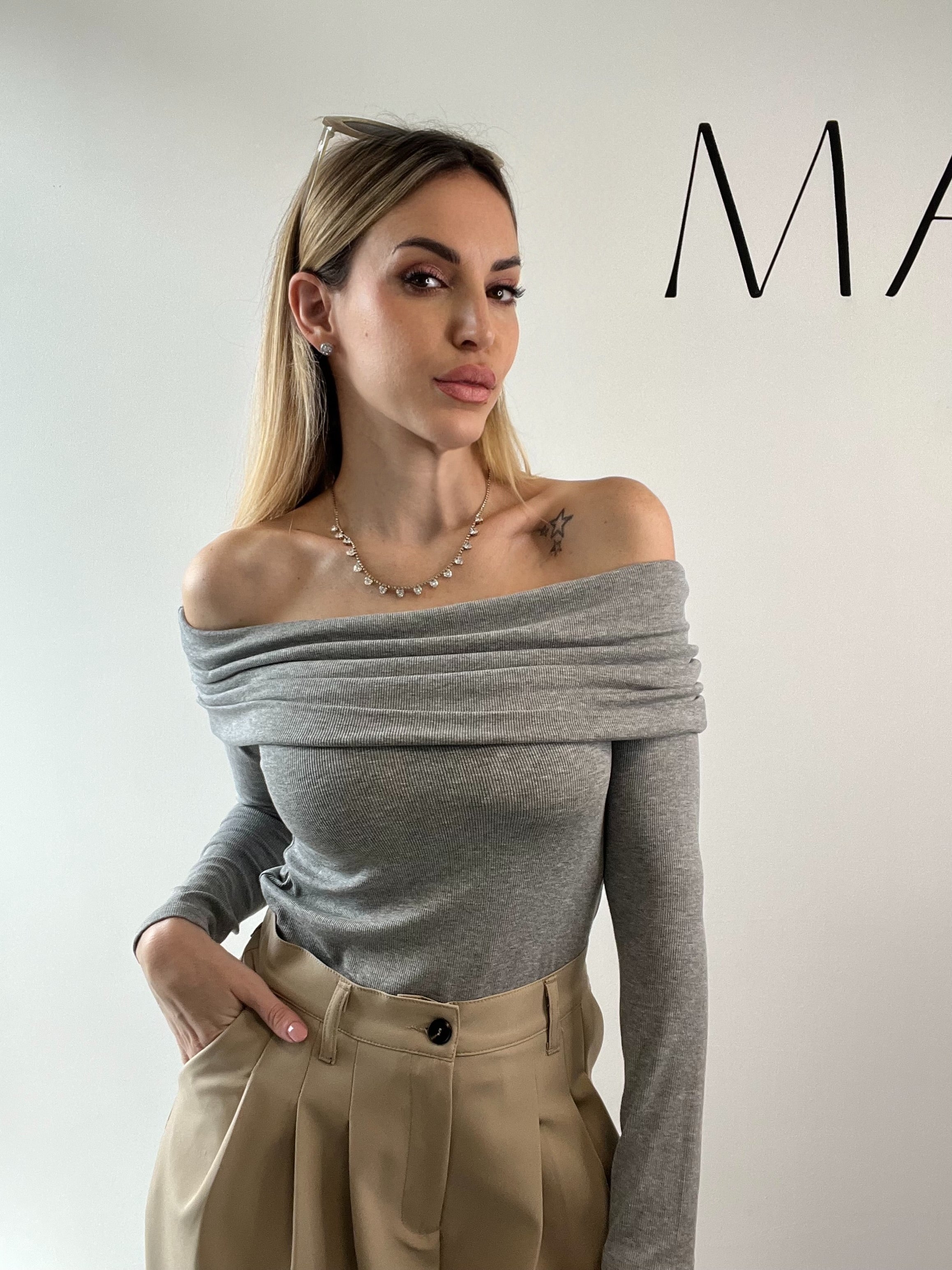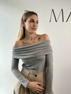 Maglia a manica lunga grigio chiaro con scollatura off-shoulder
