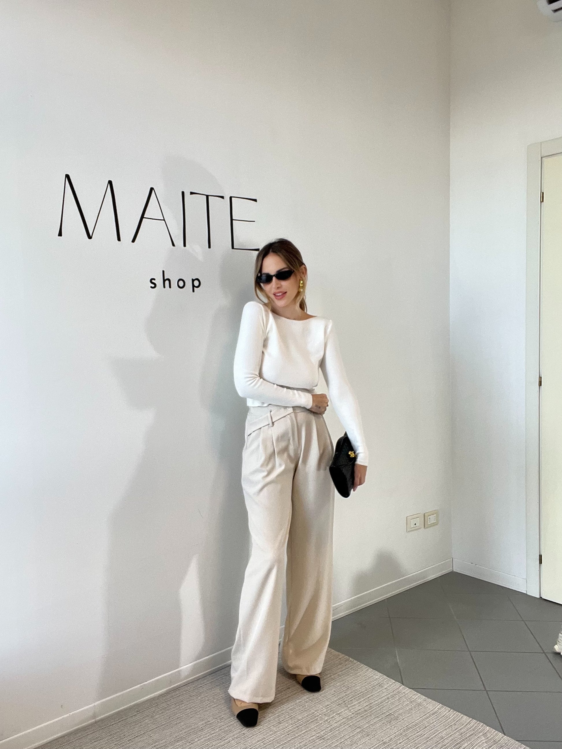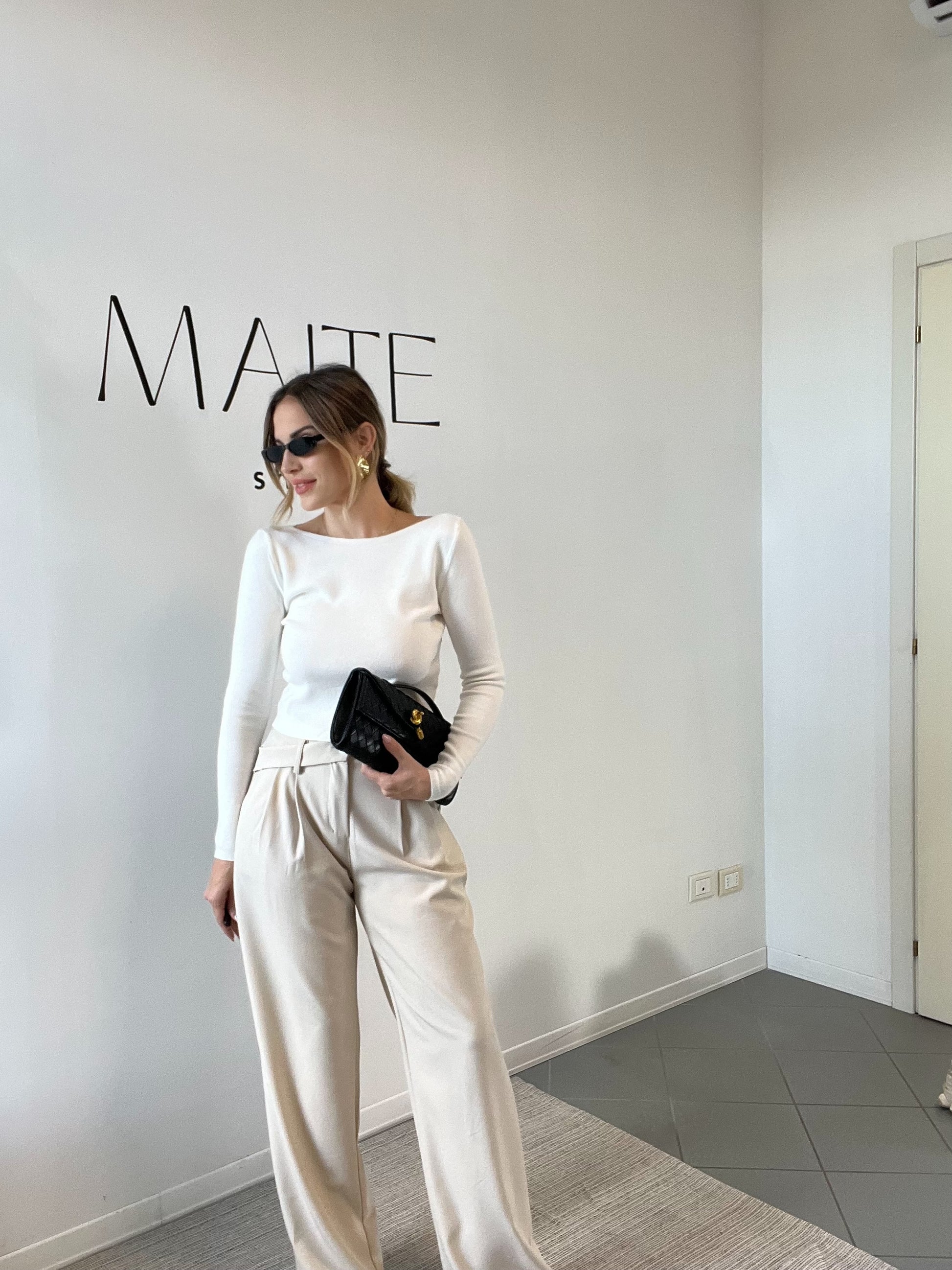 Maglioncino bianco in viscosa 65% a manica lunga dal fit aderente, realizzato in morbida viscosa (65%) che assicura comfort caldo e leggerezza. Il design essenziale e raffinato lo rende un capo versatile, perfetto da indossare da solo o come sotto giacca. Il colore bianco dona luminosità e si abbina facilmente a qualsiasi look, dal casual all’elegante.