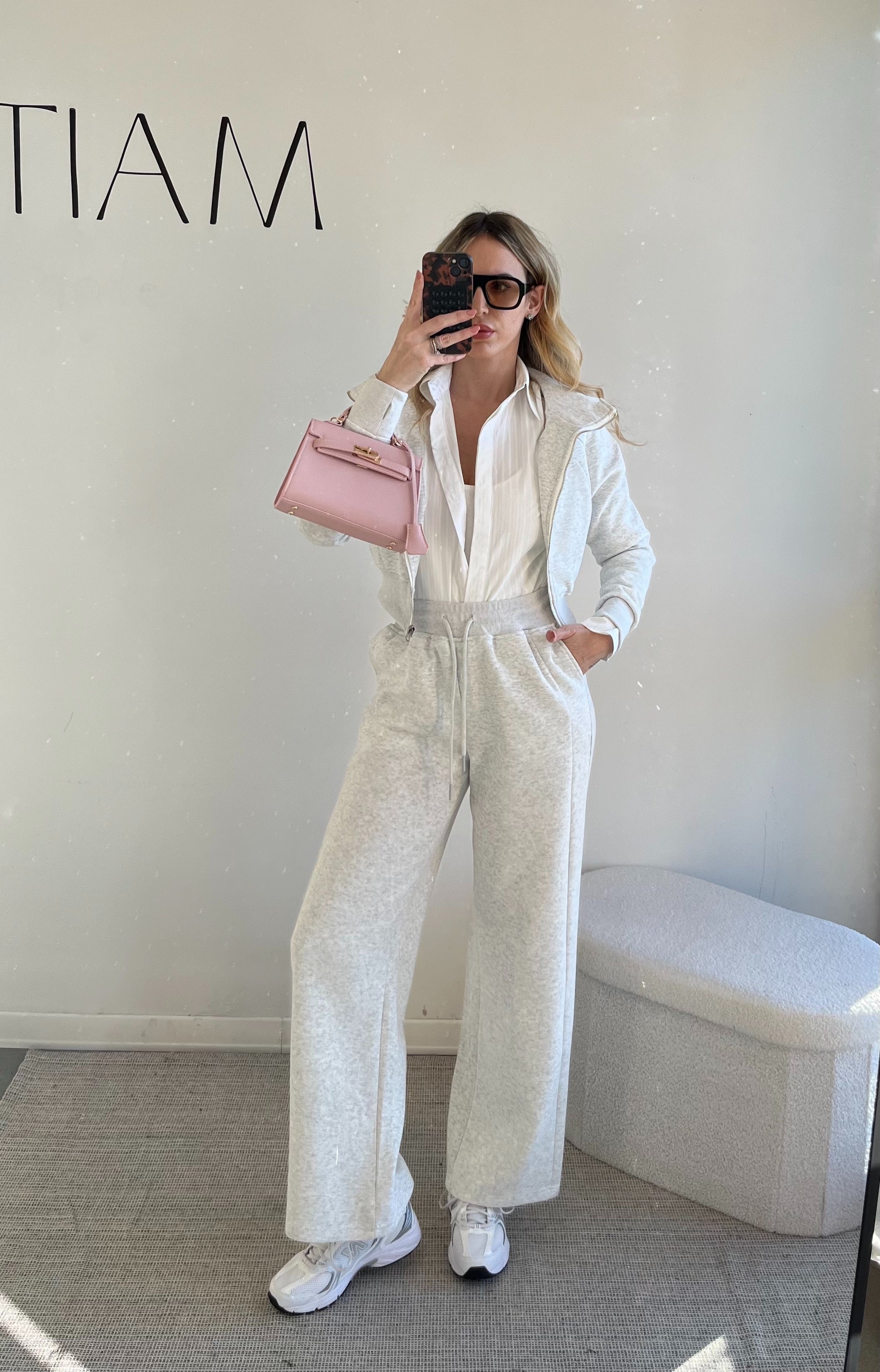 Questa tuta è il perfetto equilibrio tra comfort e stile ricercato.Composta da felpa cropped con zip e cappuccio e pantalone palazzo a vita alta con coulisse, valorizza la silhouette senza costringere, regalando un look pulito e femminile.Il tessuto è morbido, caldo e strutturato, ideale per accompagnarti dalla mattina alla sera: perfetta con sneakers per il giorno, irresistibile con accessori più chic per un mood sofisticato.
