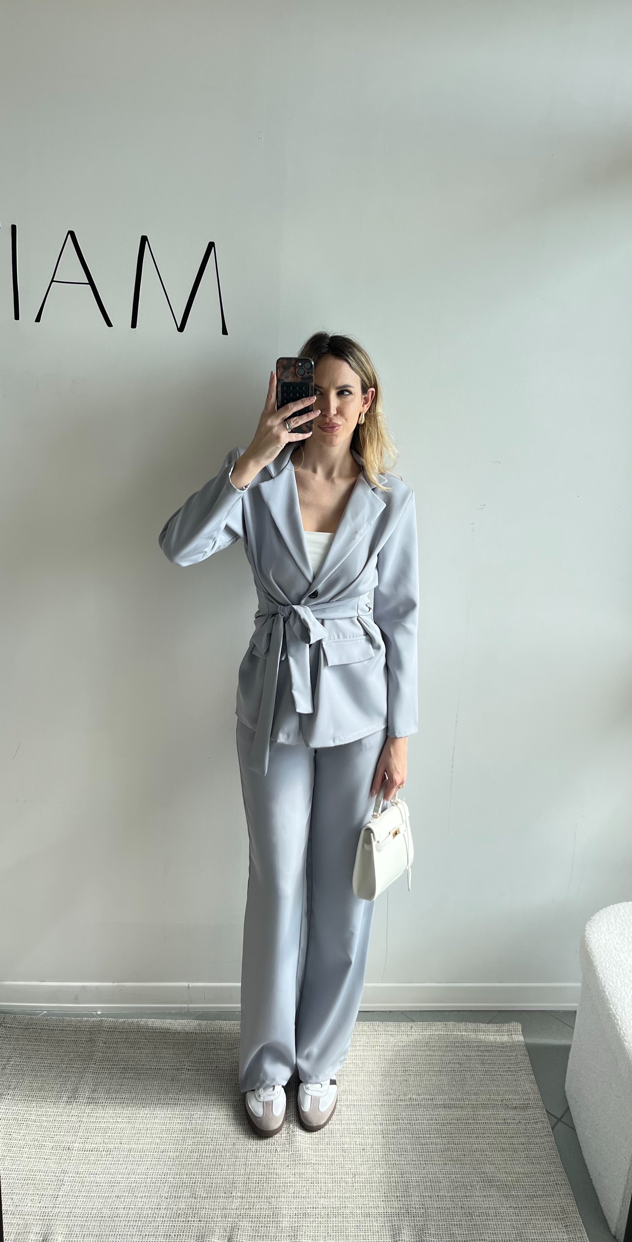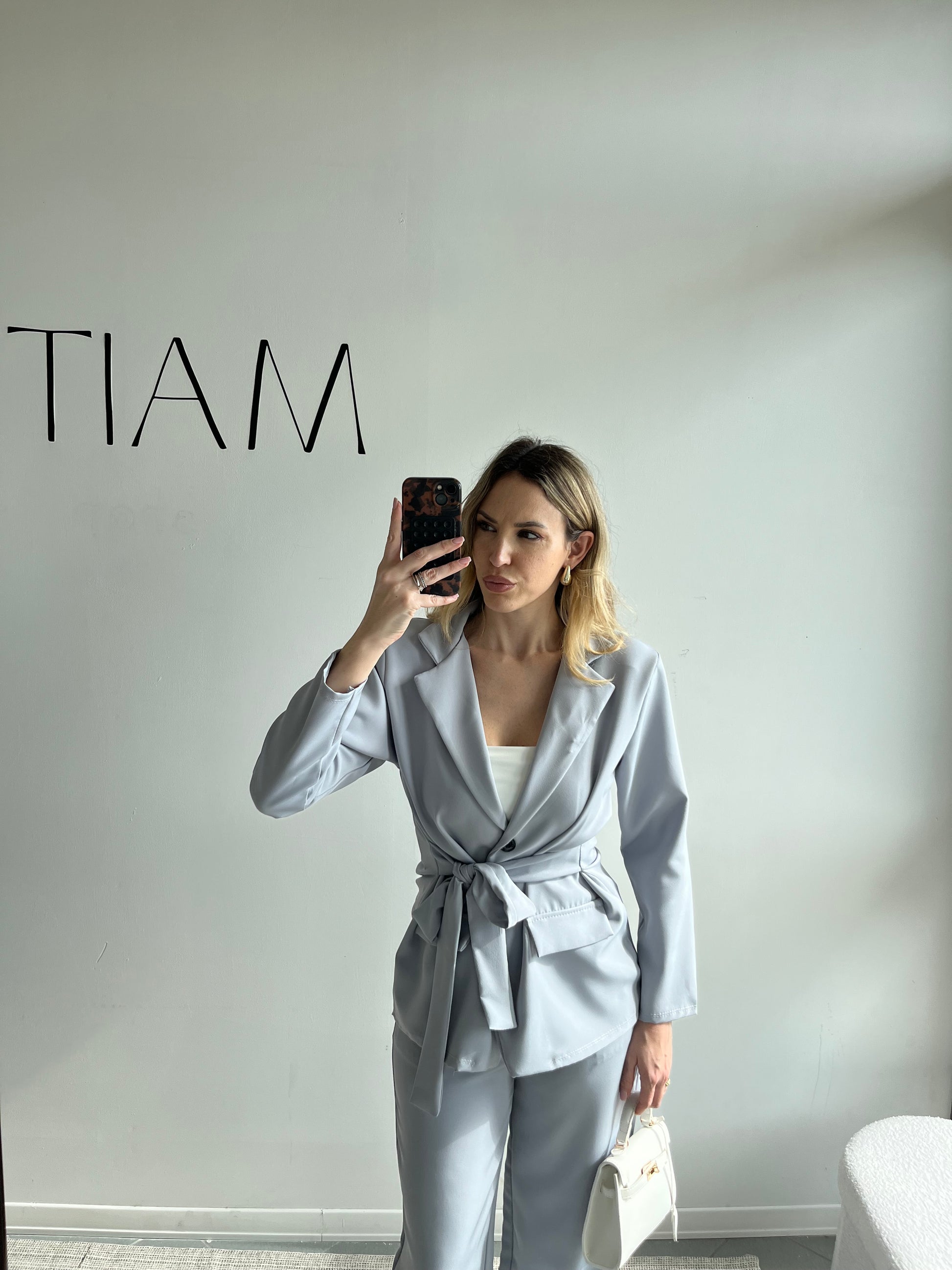 • Blazer con Cintura: Il pezzo forte è il blazer dotato di cintura in tessuto coordinata, che ti permette di segnare il punto vita per un effetto super femminile o di lasciarlo aperto per un look più rilassato.