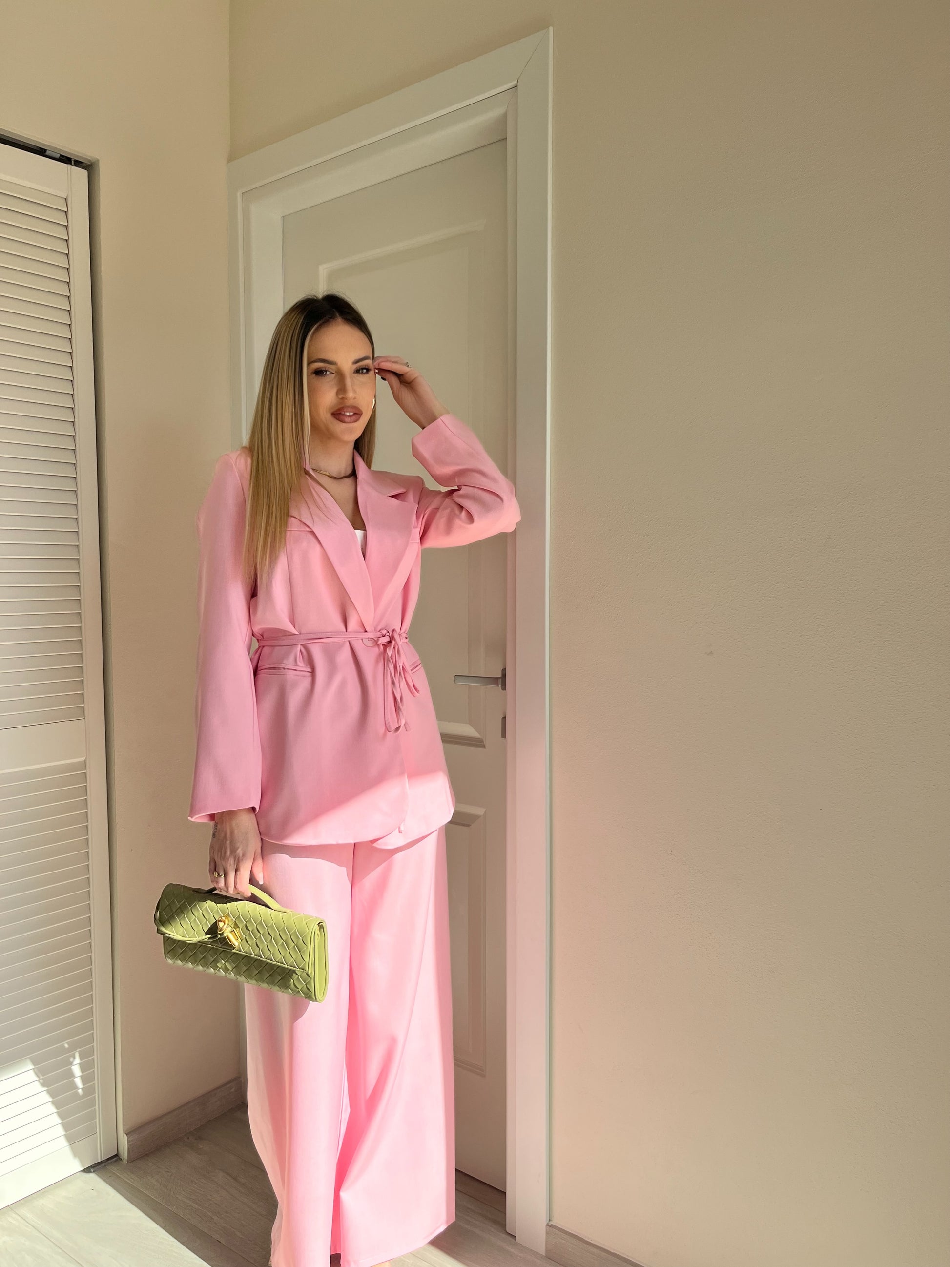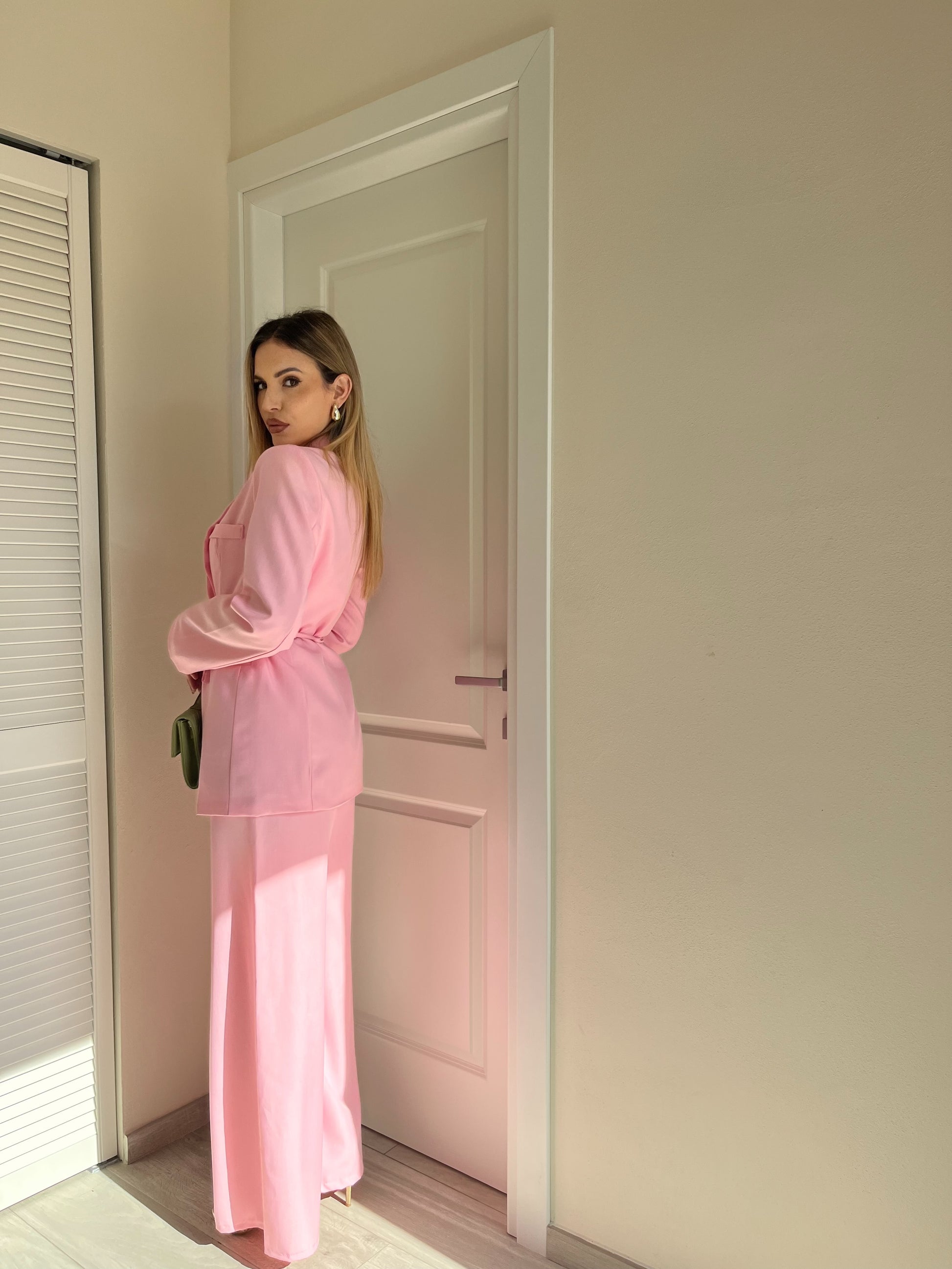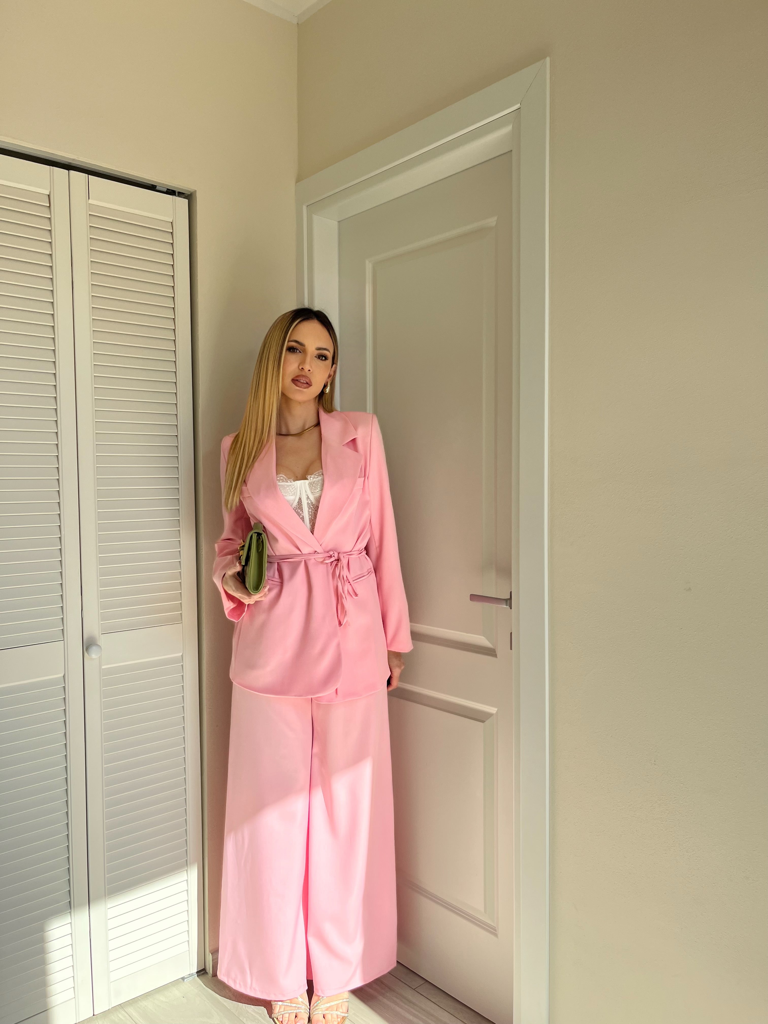 - Completo composto da giacca con cintura + pantalone palazzo