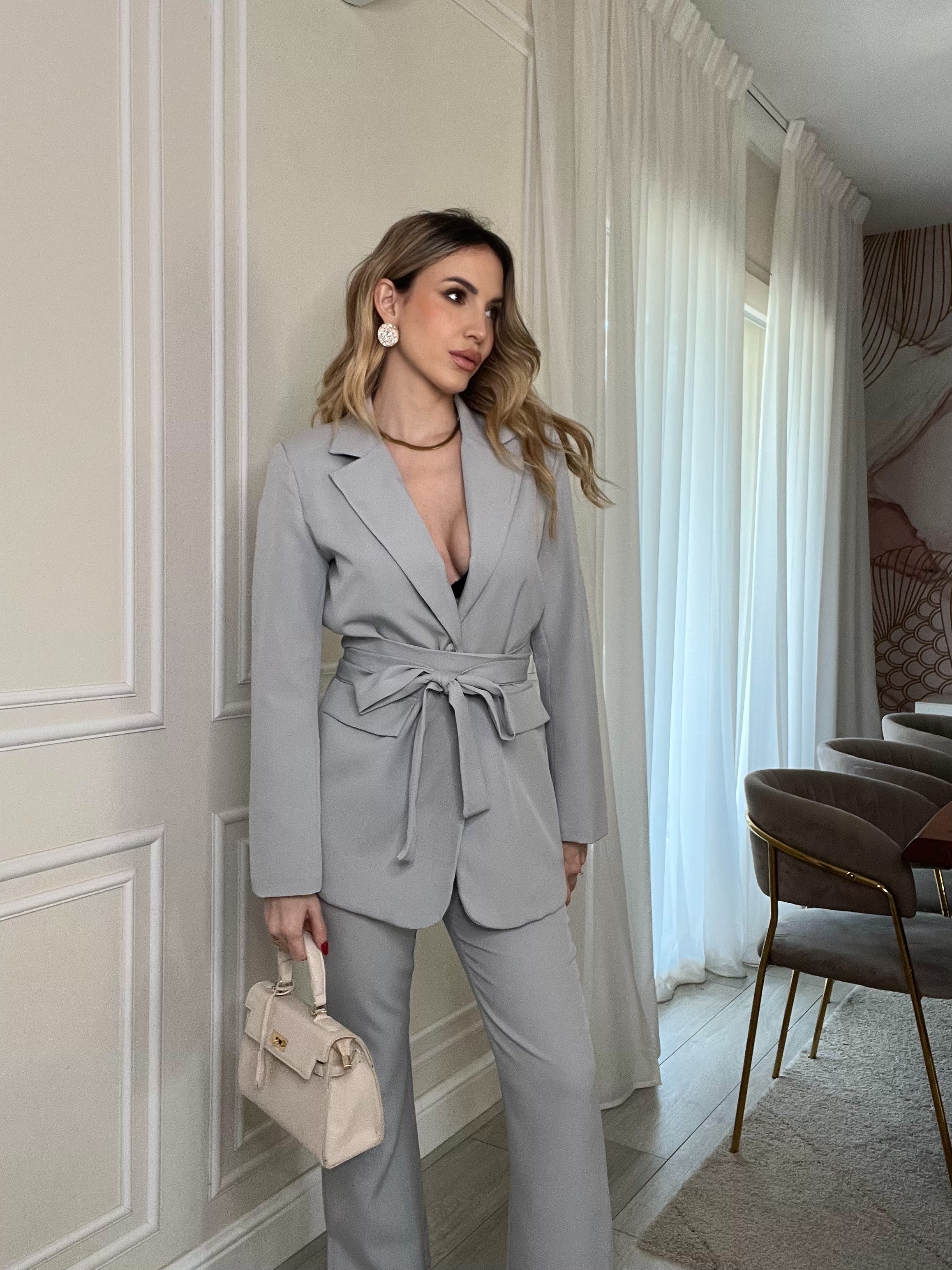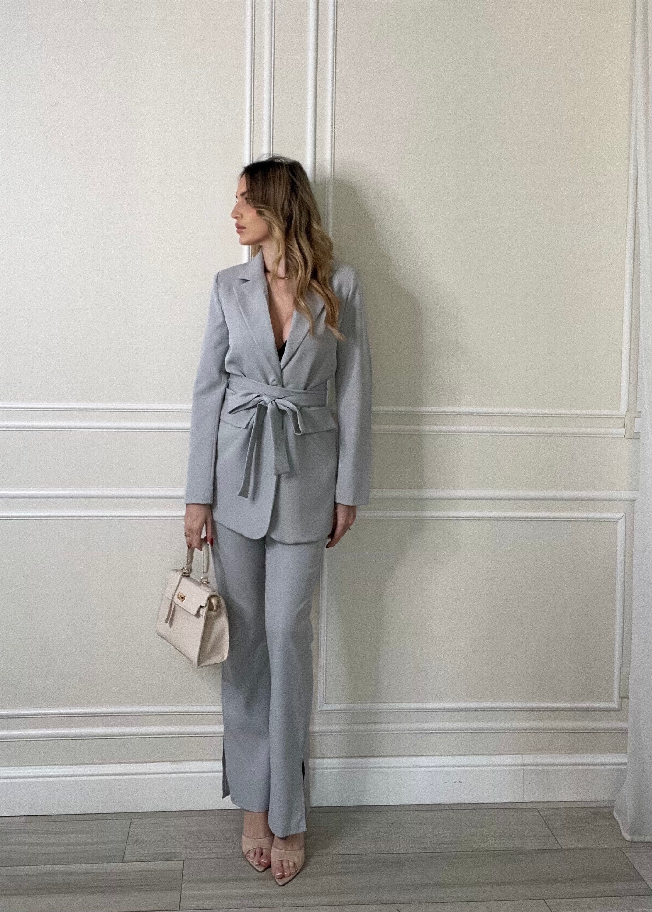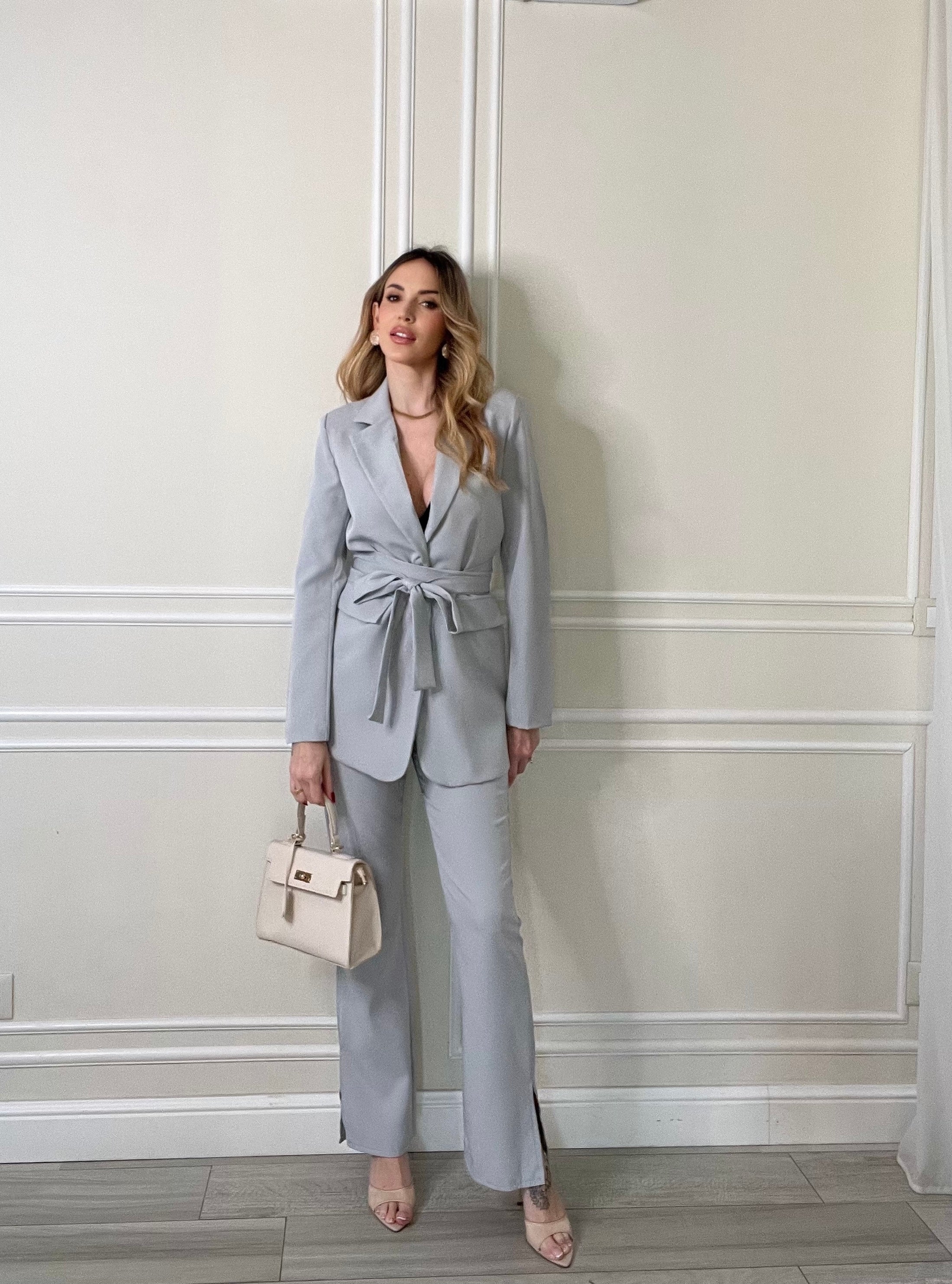 • Blazer con Cintura: Il pezzo forte è il blazer dotato di cintura in tessuto coordinata, che ti permette di segnare il punto vita per un effetto super femminile o di lasciarlo aperto per un look più rilassato.